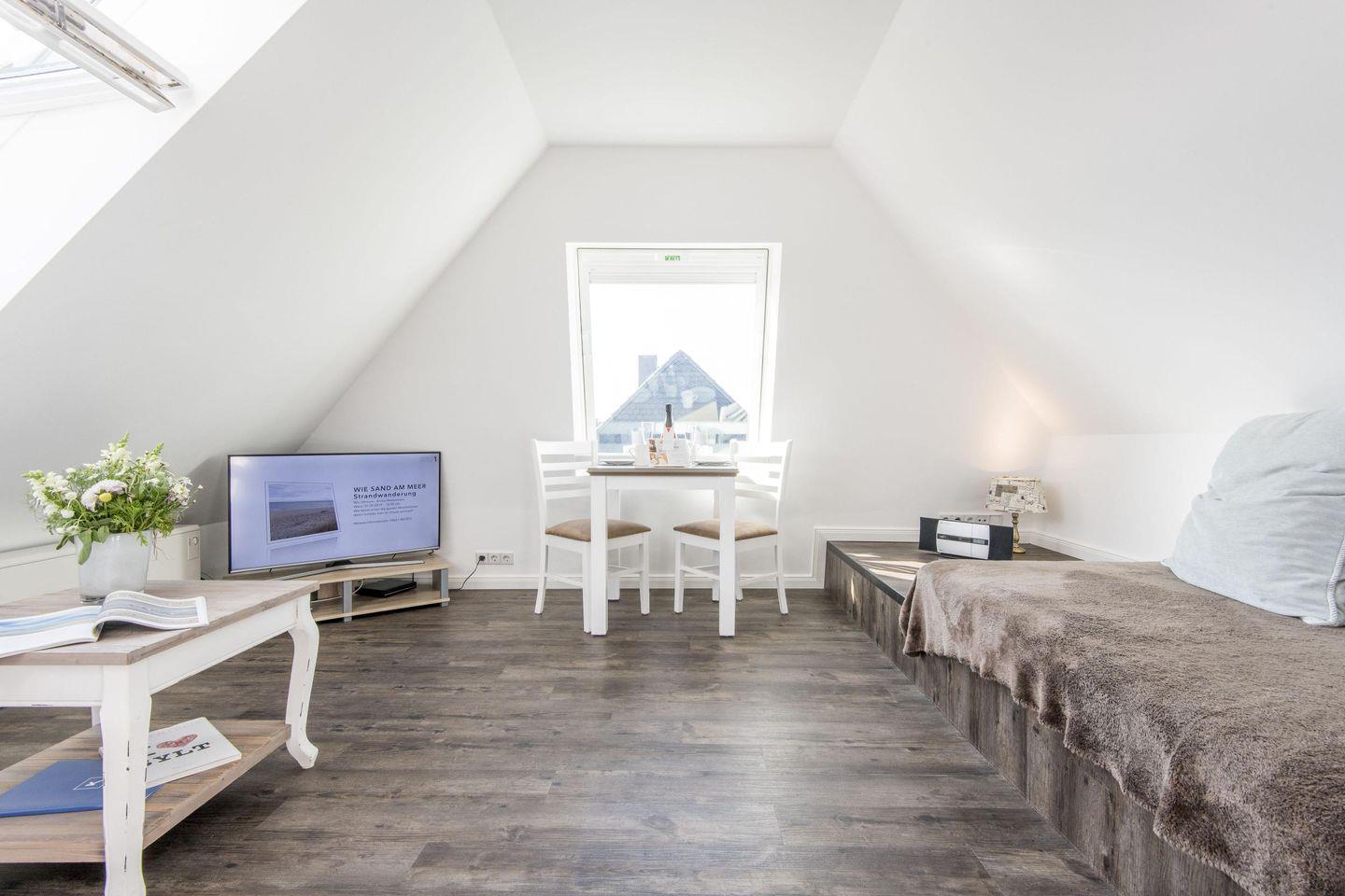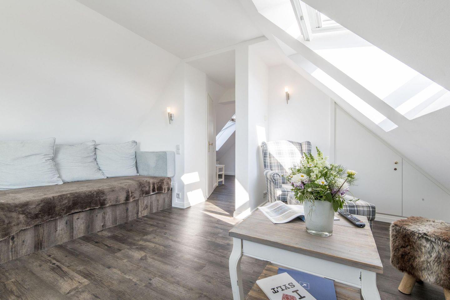 2-Zimmer-Ferienwohnung auf einer Ebene (DG) in Wenningstedt mit ca. 38 qm für bis zu 2 Personen.