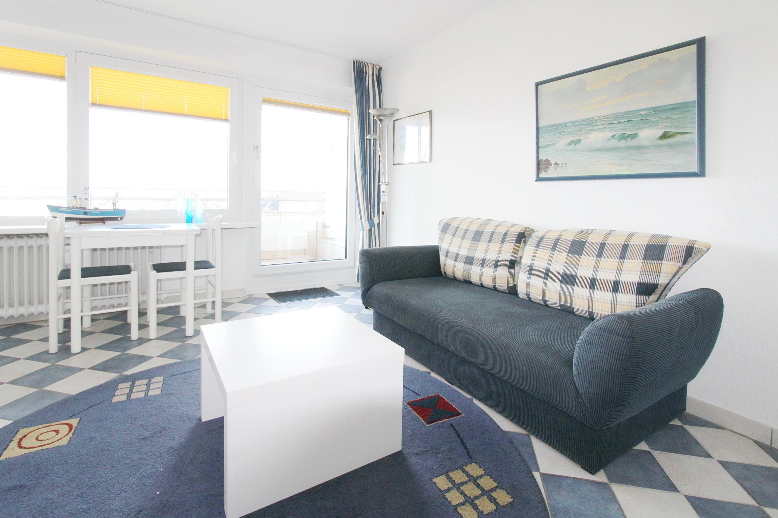Diese maritim dekorierte Ferienwohnung in der 2. Etage zur Landseite befindet sich im Dünenhof zum Kronprinzen, nur wenige Schritte vom Strand und Meer entfernt. Der kombinierte Wohn-/Schlafraum mit vorgelagertem Ostbalkon (Balkonmöbel sind vorhanden) verfügt über Einzelschrankbetten, einen Essplatz am Fenster mit 2 Stühlen, eine komfortable Couch und einen Fernsehsessel. In der Wohnung wurden Fliesen verlegt. Im Badezimmer gibt es eine Halbrunddusche und einen beheizten Handtuchtrockner. In der Einbauküche im Flur mit Mikrowelle und Cerankochfeld (2 Platten), können sie sich selbst verpflegen. Zur technischen Ausstattung gehört: ein Flachbildfernseher und ein Radio mit CD Player. Ein freier WLAN-Hotspot (Duenenhof zum Kronprinzen - Passwort im Appartement - ohne Gewähr) steht ihnen kostenfrei zur Verfügung und den WLAN Anschluss des Eigentümers können Sie auch nutzen (die Zugangsdaten stehen auf dem Router). Der Parkplatz Nr. 106 kann kostenfrei genutzt werden. Wohnungsgröße: ca. 30 m².