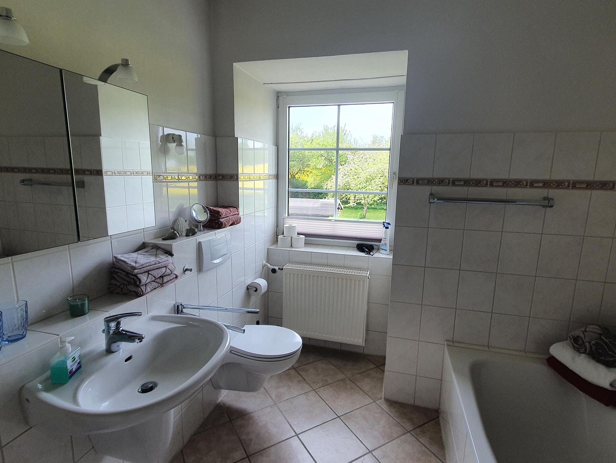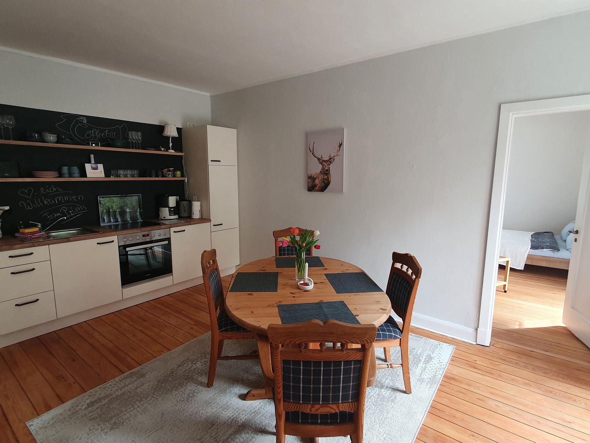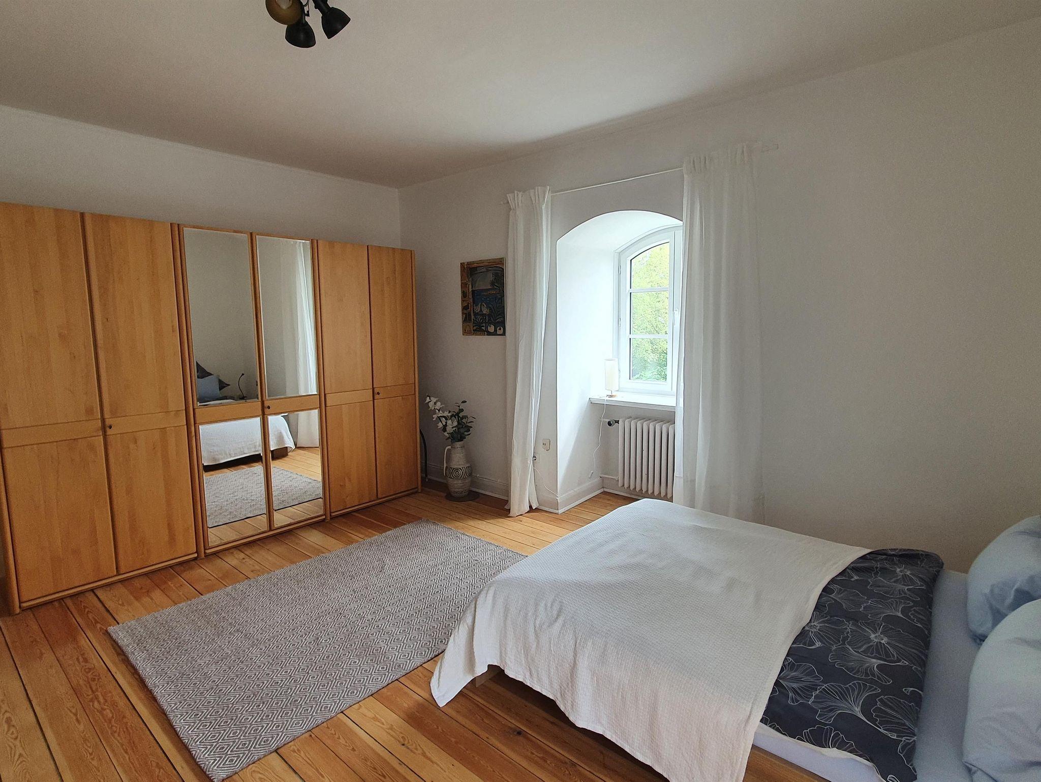 Ferienwohnung in unserem großen Herrenhaus in der holsteinischen Schweiz. Im 1. Stock mit großem Balkon nach Süden und seperatem Eingang. Nutzung von Terasse und Garten. Ein Schlafzimmer mit Doppelbett (1,40) und ausziehbarer Schlafcouch. Wohnzimmer mit Küchenzeile und großem Esstisch. Bad mit Dusche, WC und Badewanne. Ruhige Lage, 15 min. von Bad Segeberg, 20 min. zur Ostsee. Ideal für Karl-May-Wochenenden.