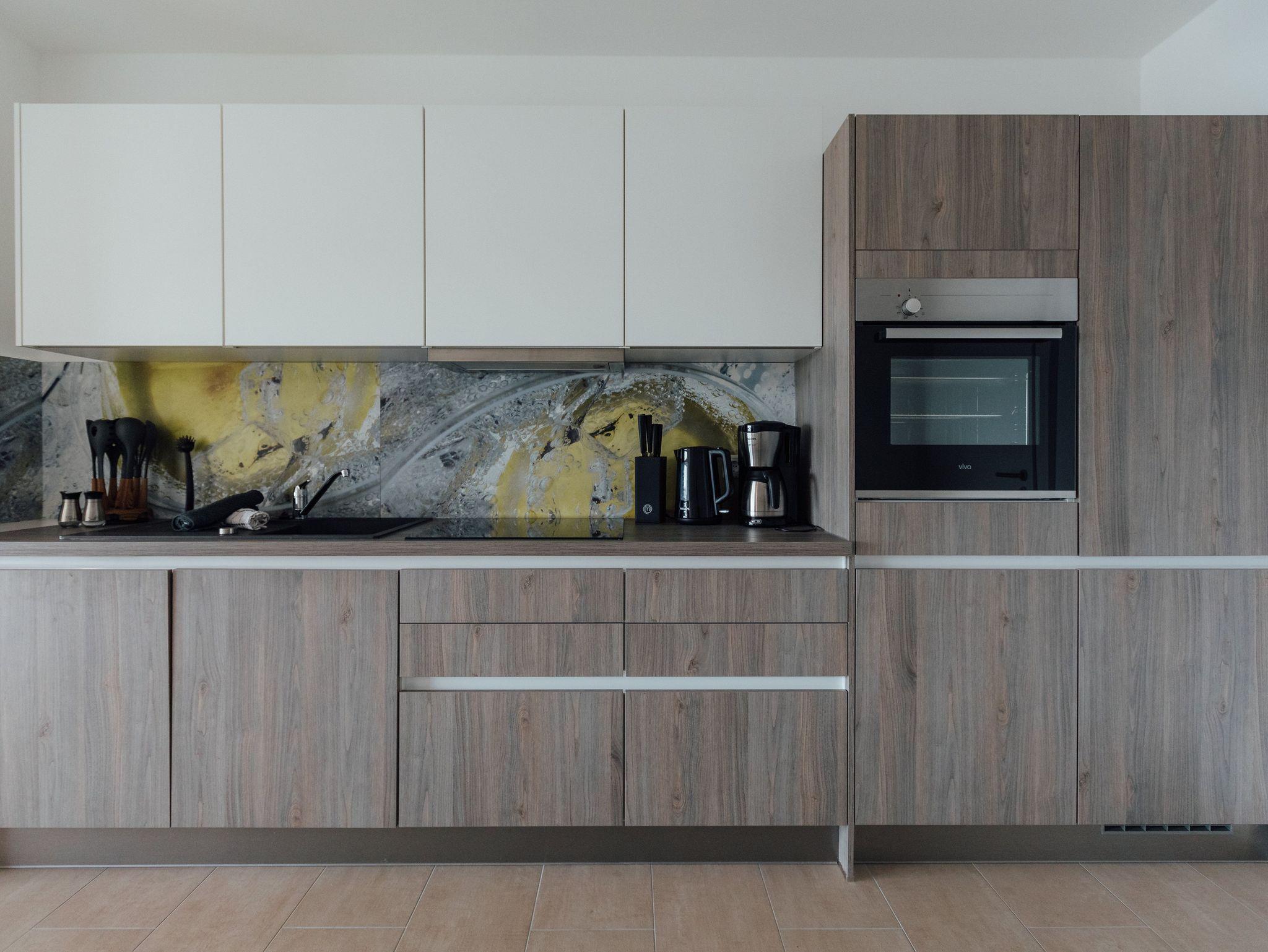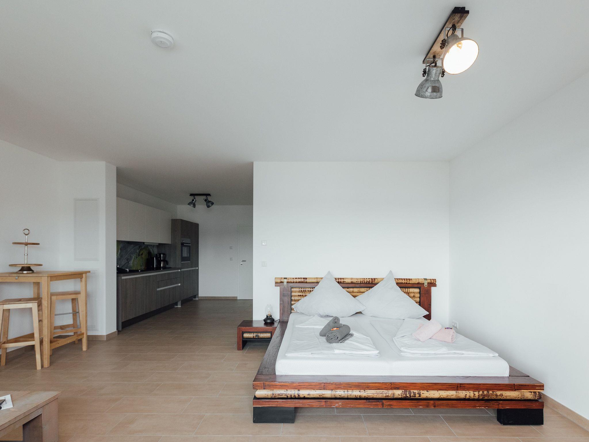 Die Ferienwohnung bietet Platz für zwei Personen. Sie ist aufgeteilt in einen gemeinsamen Wohn- und Küchenbereich sowie einem separaten Badezimmer. Im Wohnbereich sind sowohl ein Doppelbett als auch ein gemütlicher Sitzbereich sowie ein Essplatz integriert. Von hier aus gelangen Sie auf die Terrasse. Die Küche hat eine moderne Küchenzeile. Das Badezimmer verfügt über Dusche/WC. Alle Einzelbetten haben jeweils eine Größe von 80x200 cm.
