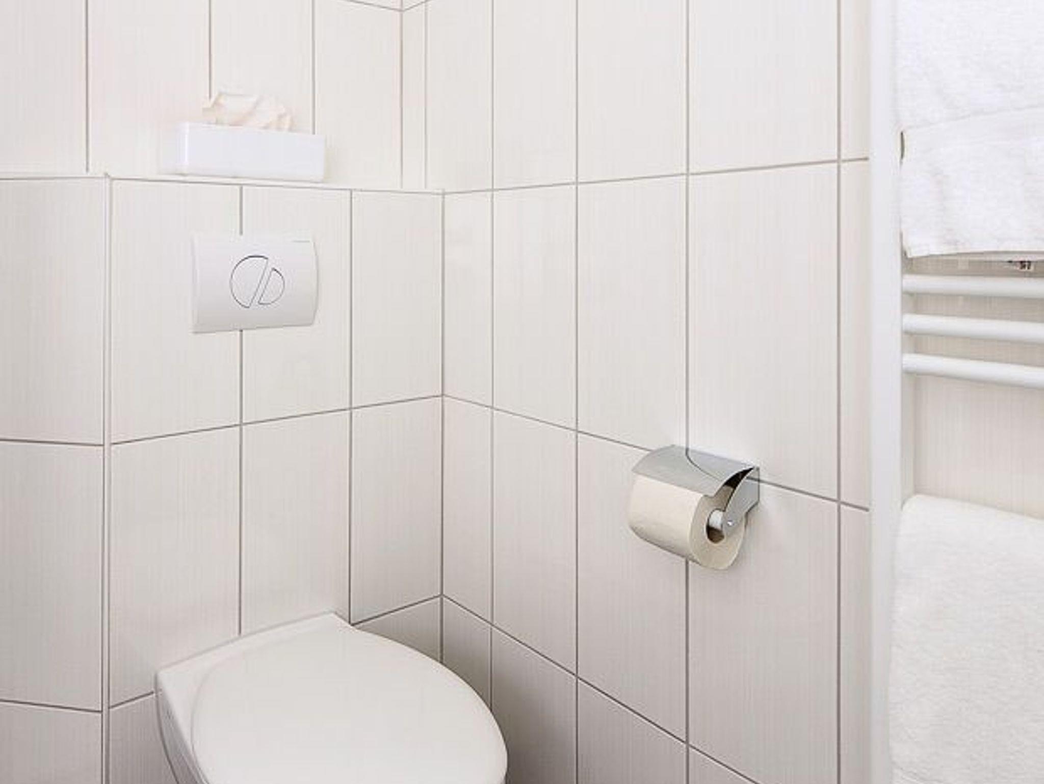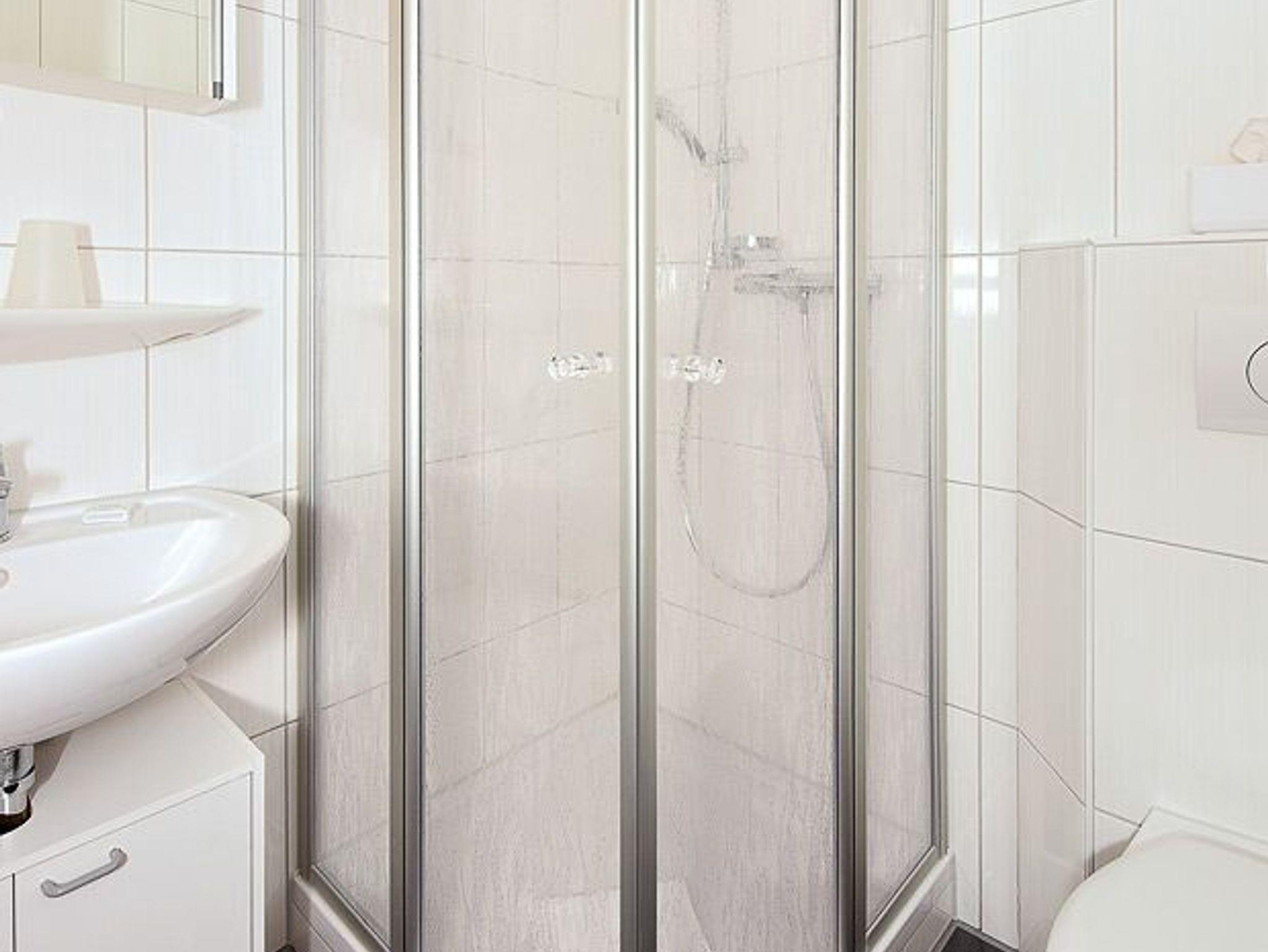 Badezimmer mit Dusche, Waschtisch und WC