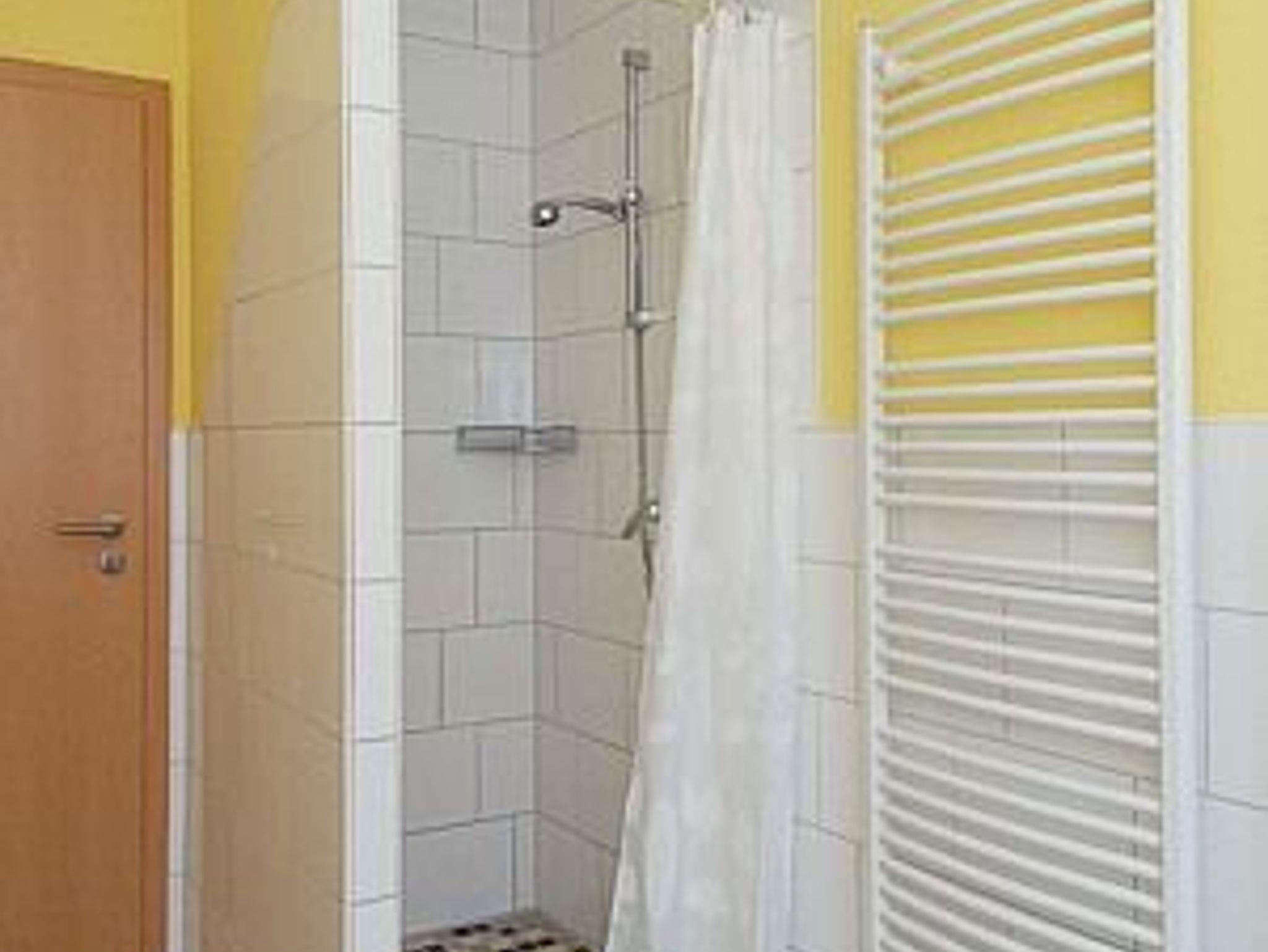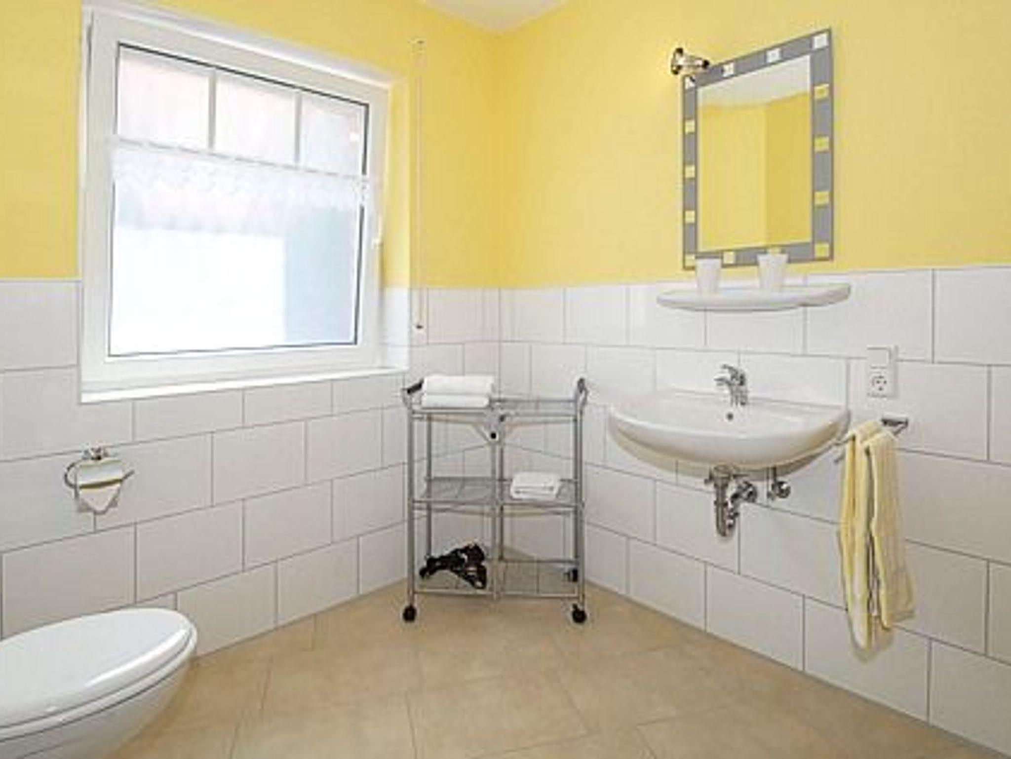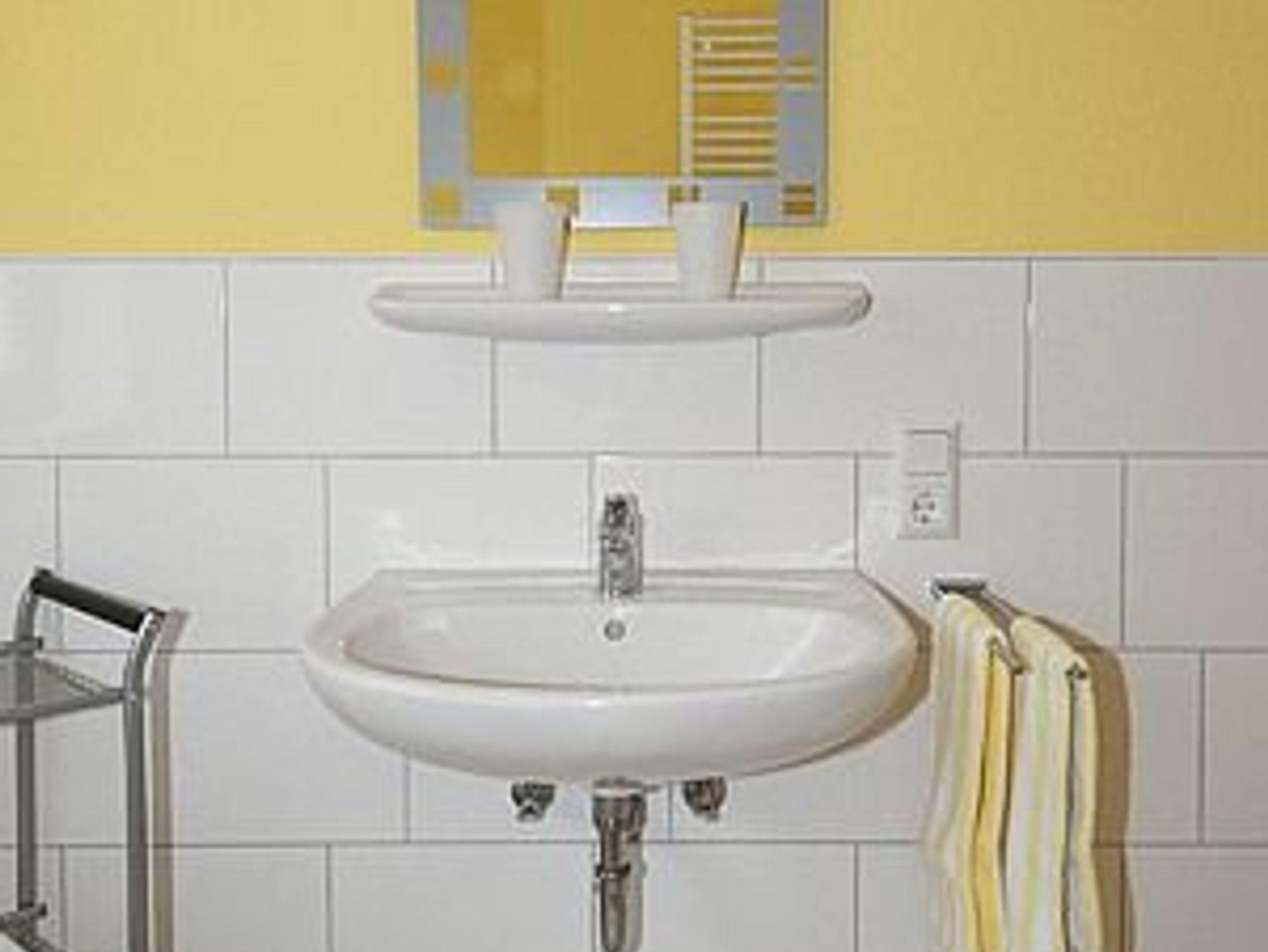 Badezimmer mit Dusche, Waschtisch und WC