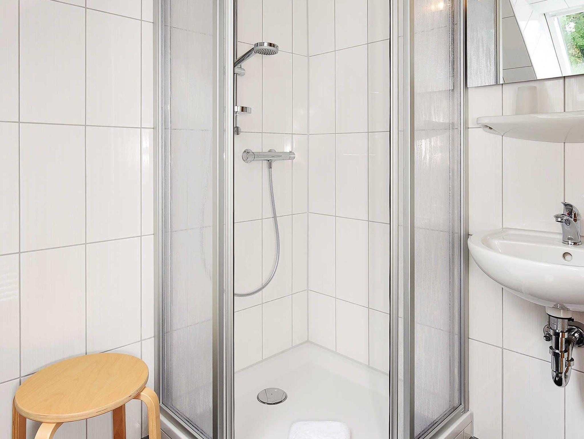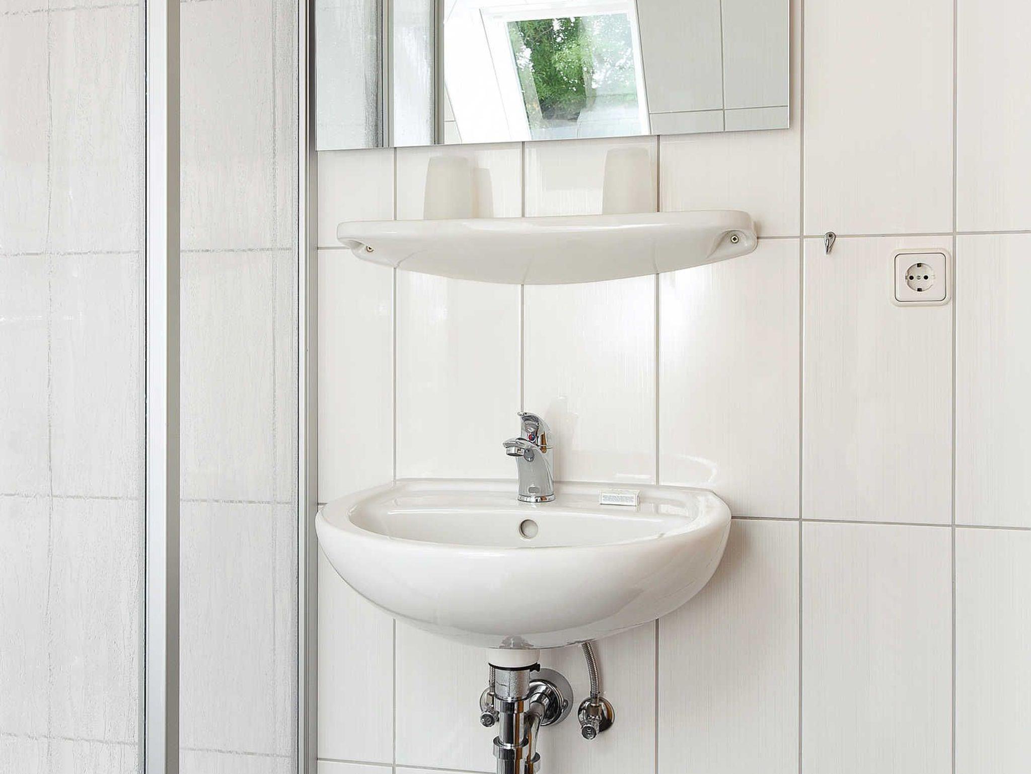 Badezimmer mit Dusche, Waschtisch und WC