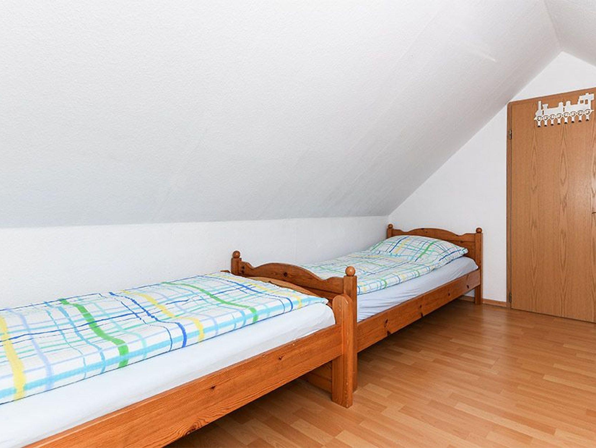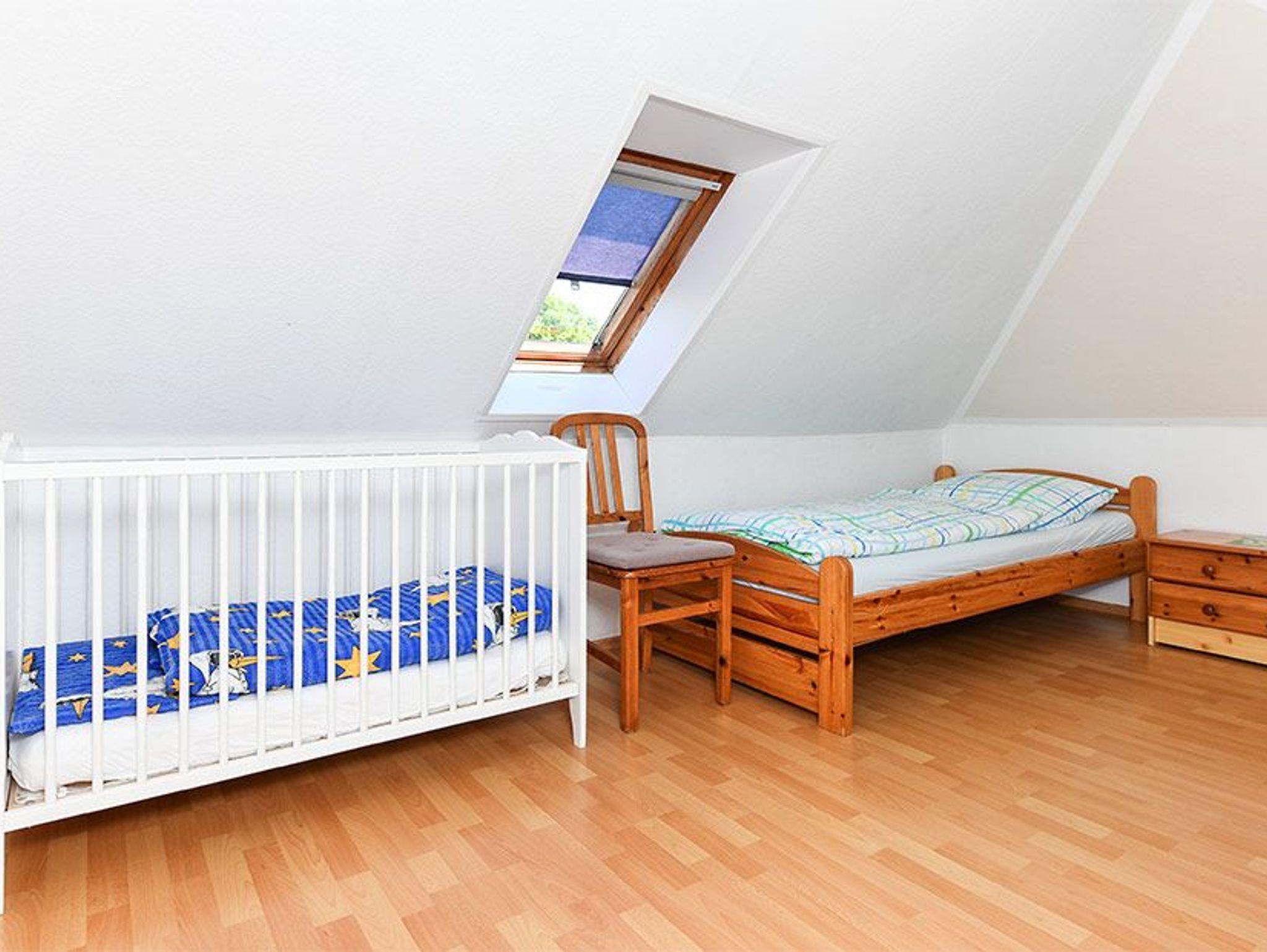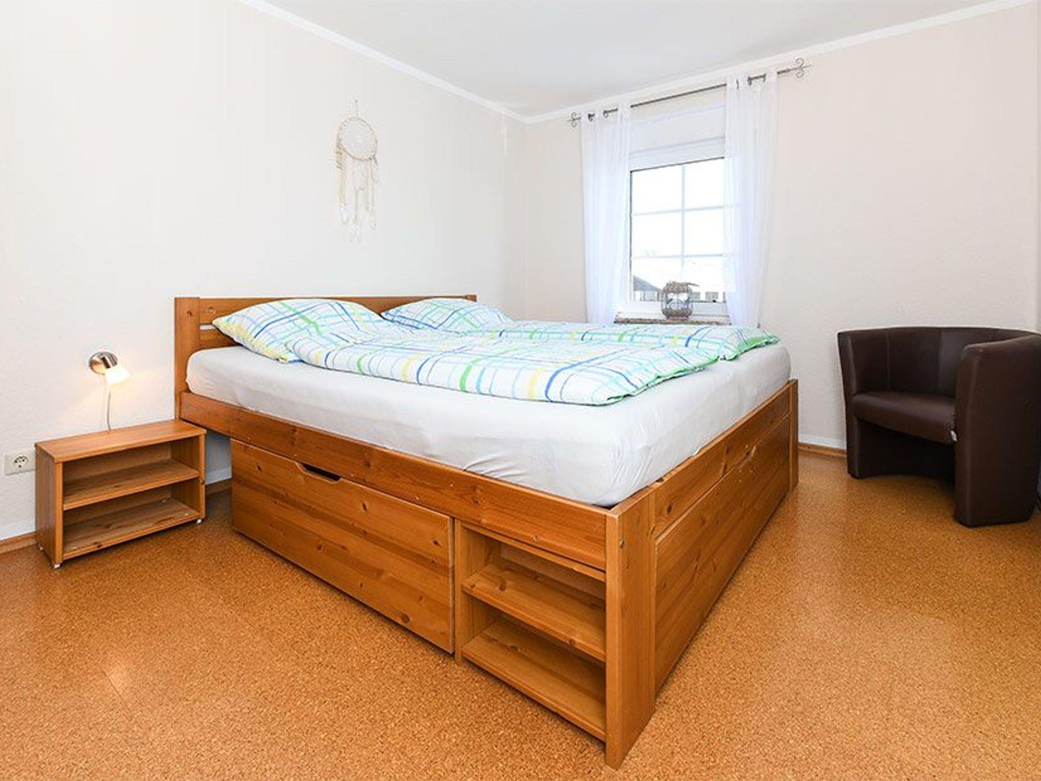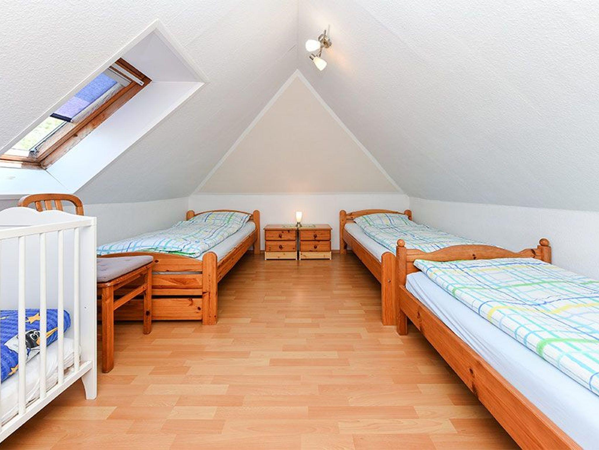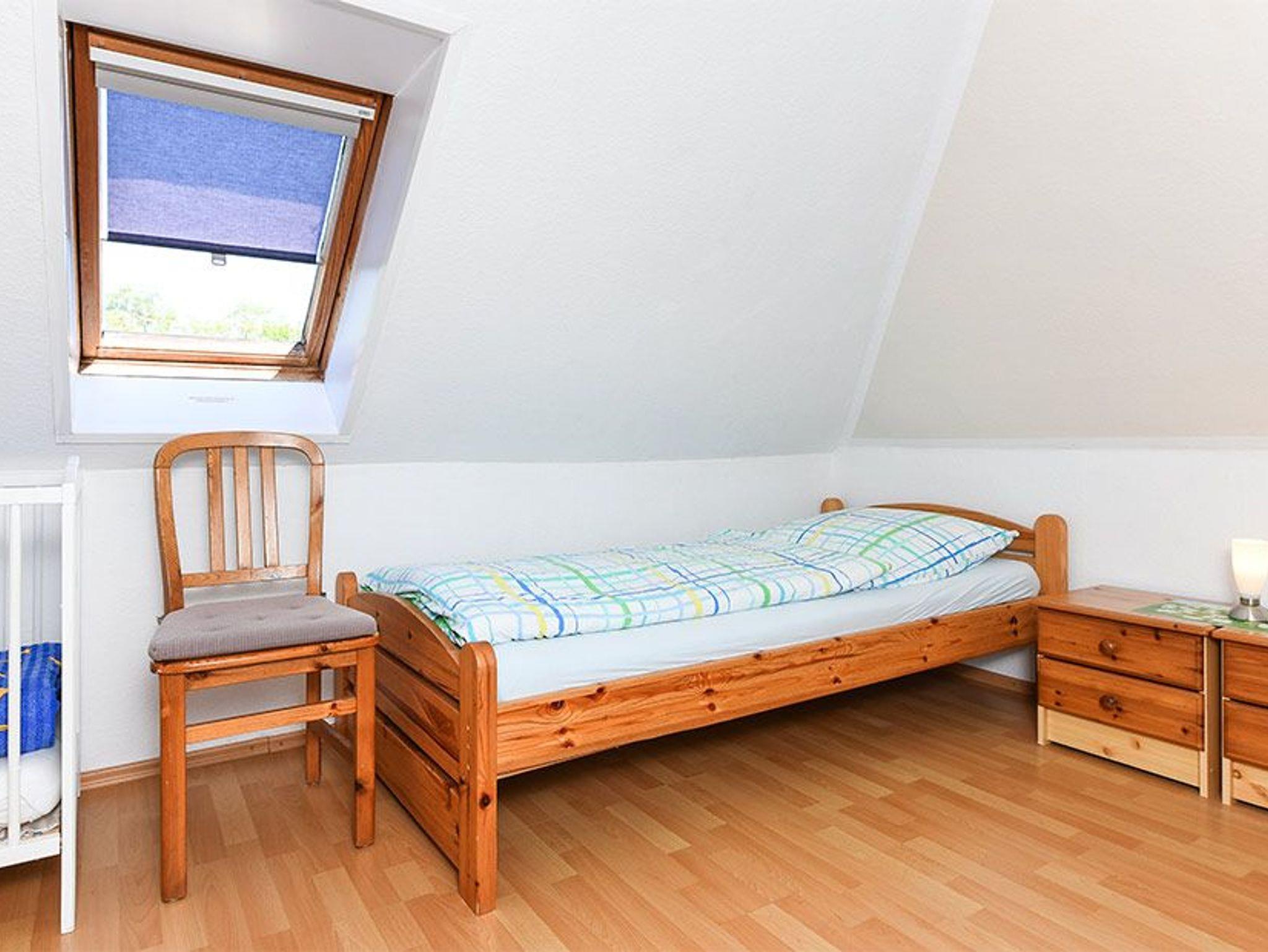 Größe ca. 75 Quadratmeter, Wohnzimmer, Küche, Schlafzimmer, „Ausguck“ (zweites separates Schlafzimmer/Kinderzimmer), Badezimmer mit Dusche, Waschtisch und WC, Obergeschoss, Koffer-/Abstellraum, optimal für 2 bis 4 Personen und zusätzlich ein Kleinkind. Im zweiten Schlafzimmer befindet sich ein Etagenbett und ein Einzelbett.