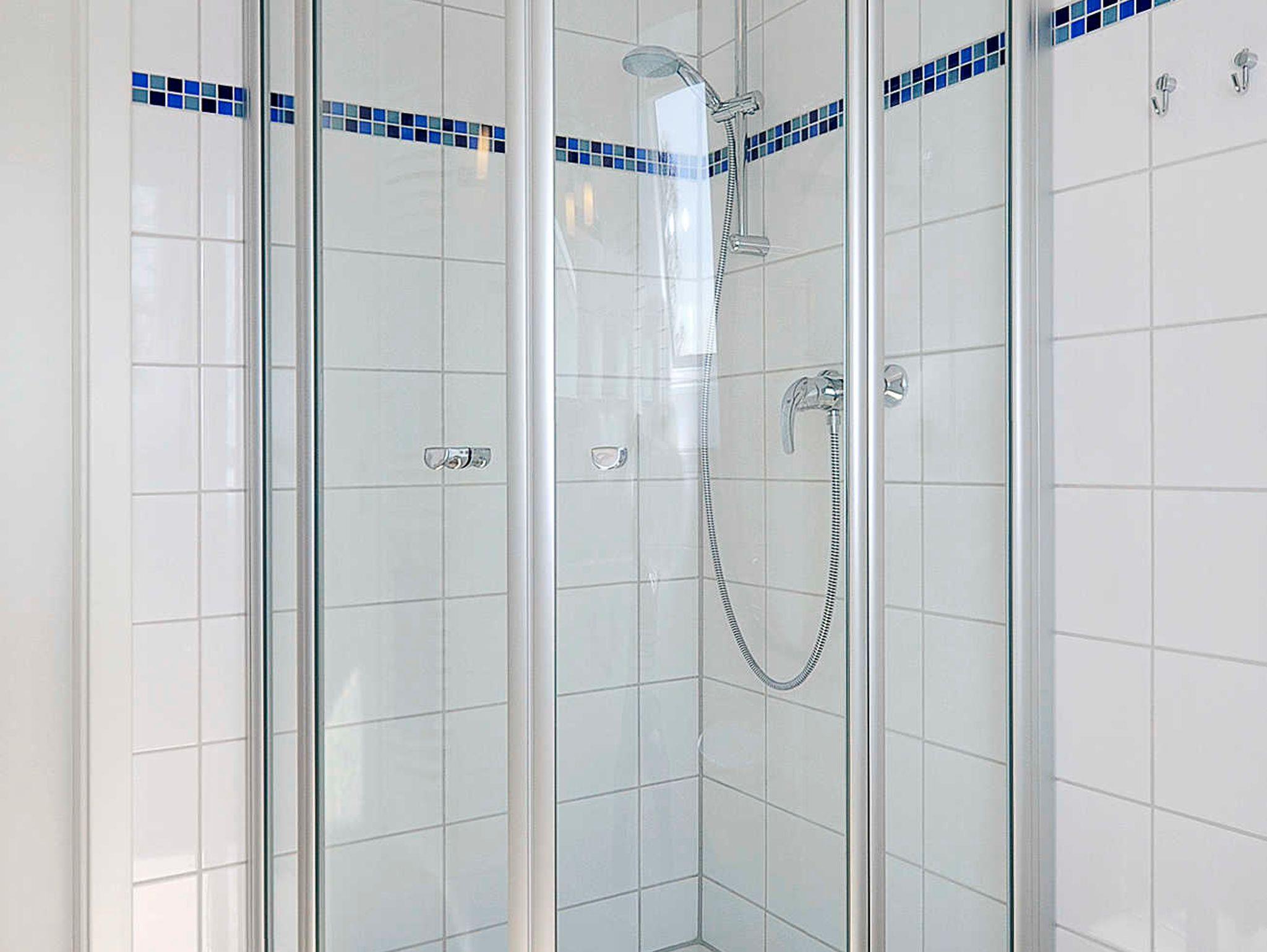 Badezimmer mit Dusche, Waschtisch und WC