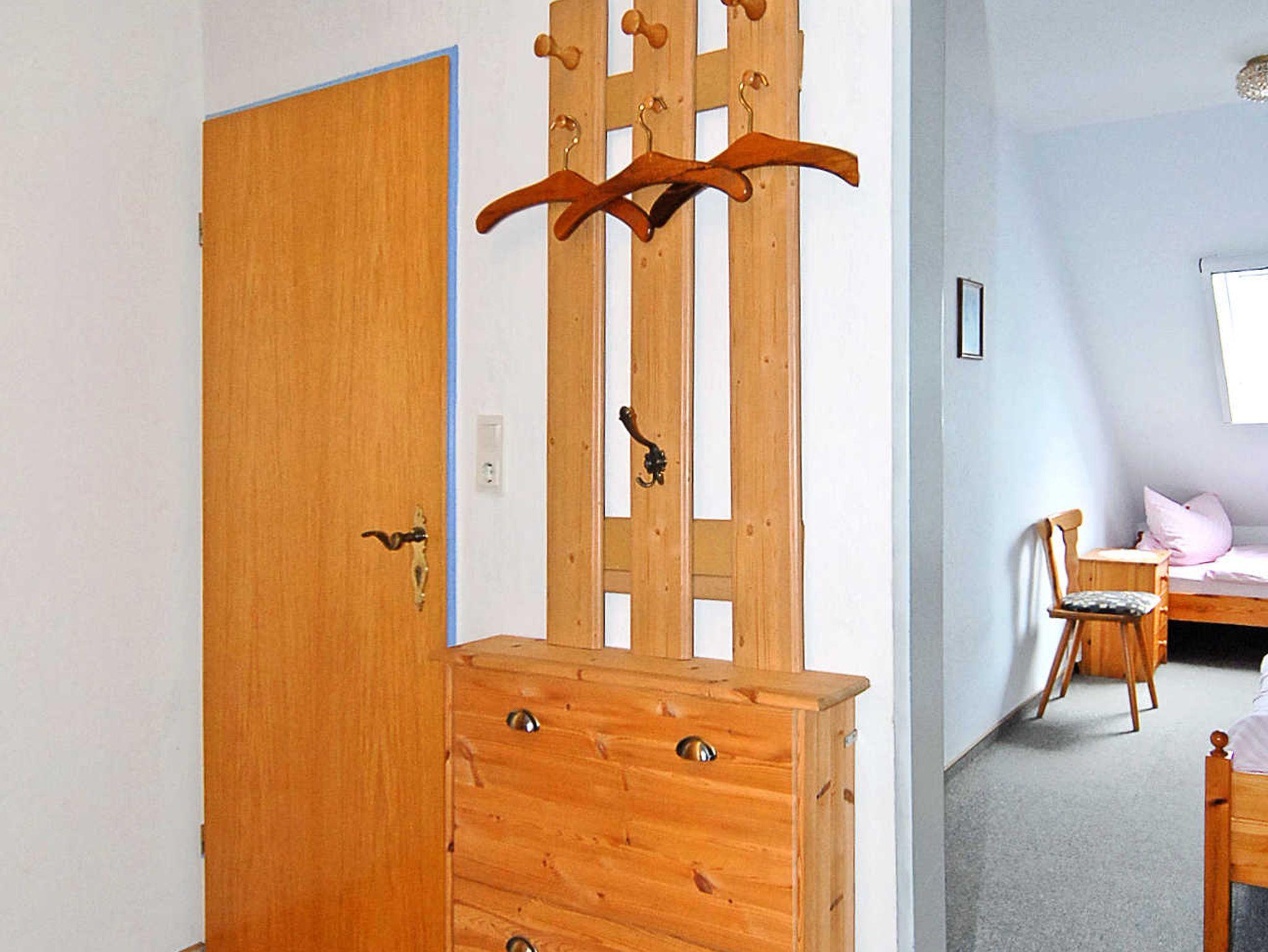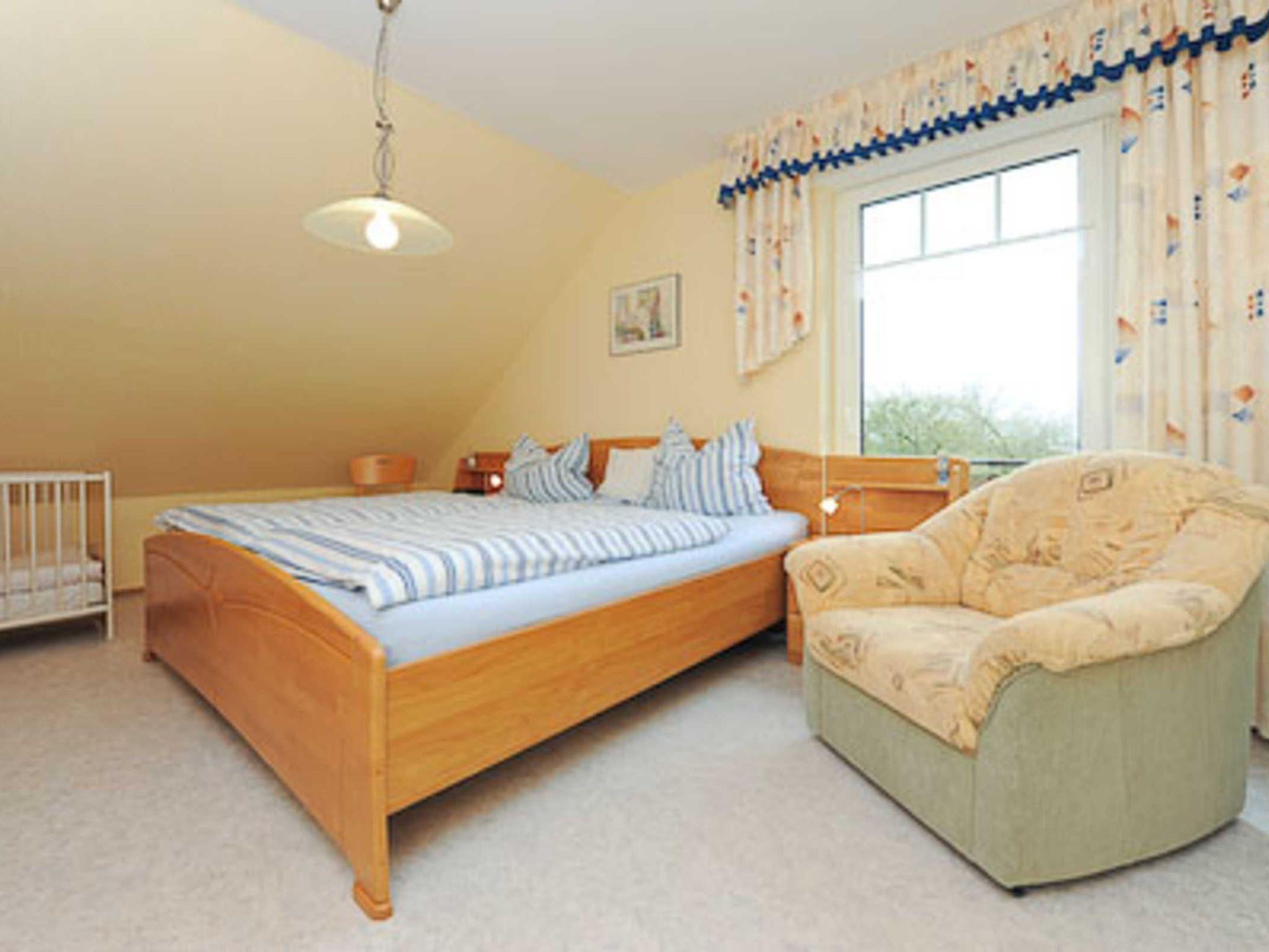 Größe ca. 70 Quadratmeter, Wohnraum mit integrierter Küche, Schlafzimmer, zweites separates Schlafzimmer/Kinderzimmer, Badezimmer mit Dusche, Waschtisch und WC, Obergeschoss, Balkon, optimal für 2 bis 4 Personen.