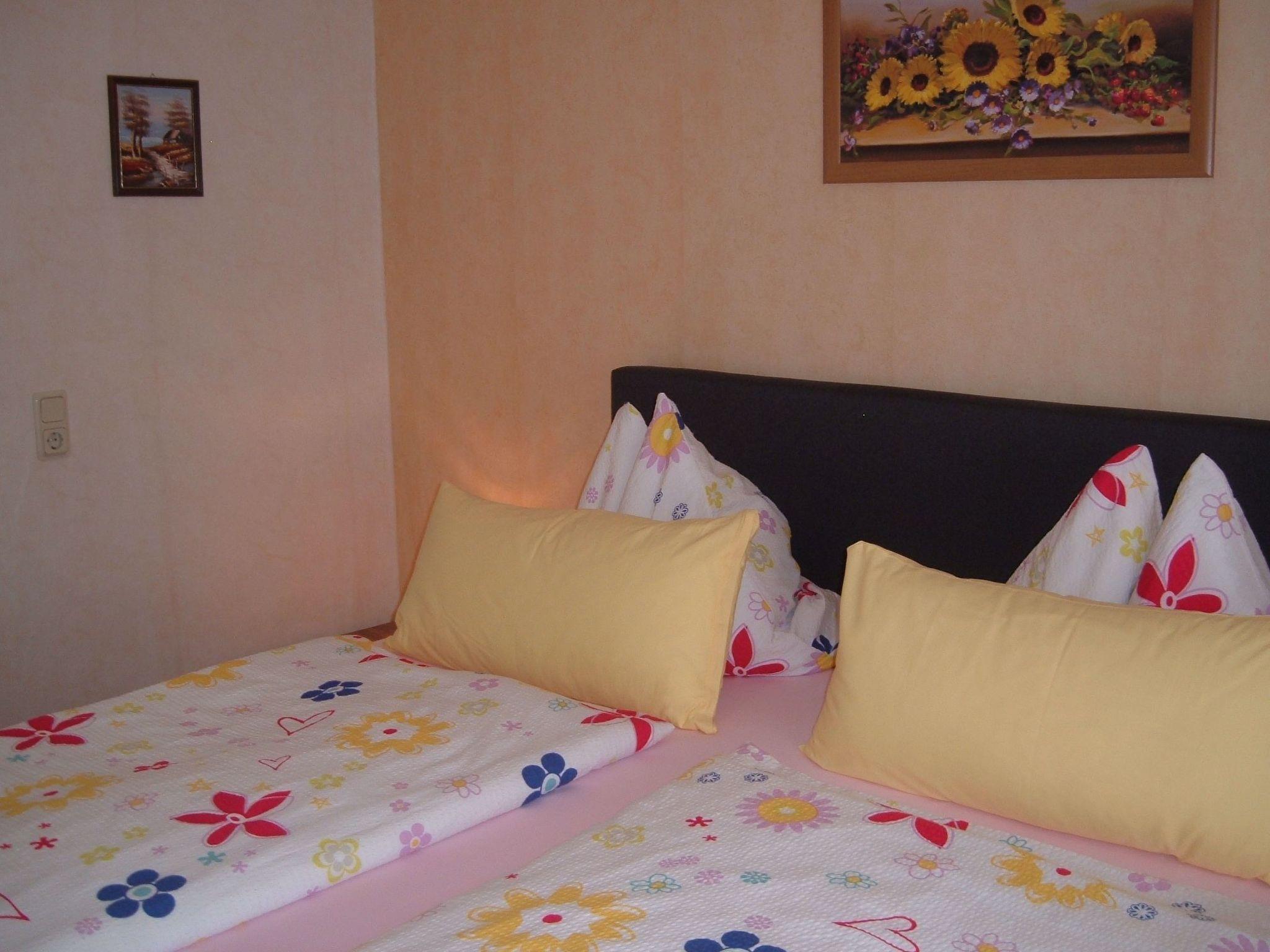 The holiday flat consists of a living room with a sofa corner, satellite TV and CD player and a nice dining area, as well as board games and books to keep your children entertained. In the first bedroom there is a double bed (box spring bed) and there is also the possibility to set up a travel cot. In the second bedroom there are three single beds and a small table group. In the kitchen you will find a cooker with ceramic hob and oven, dishwasher, and everything you need such as a coffee machine, toaster, microwave, kettle, fridge and freezer. The bathroom is equipped with a shower and WC, a hairdryer is also available!