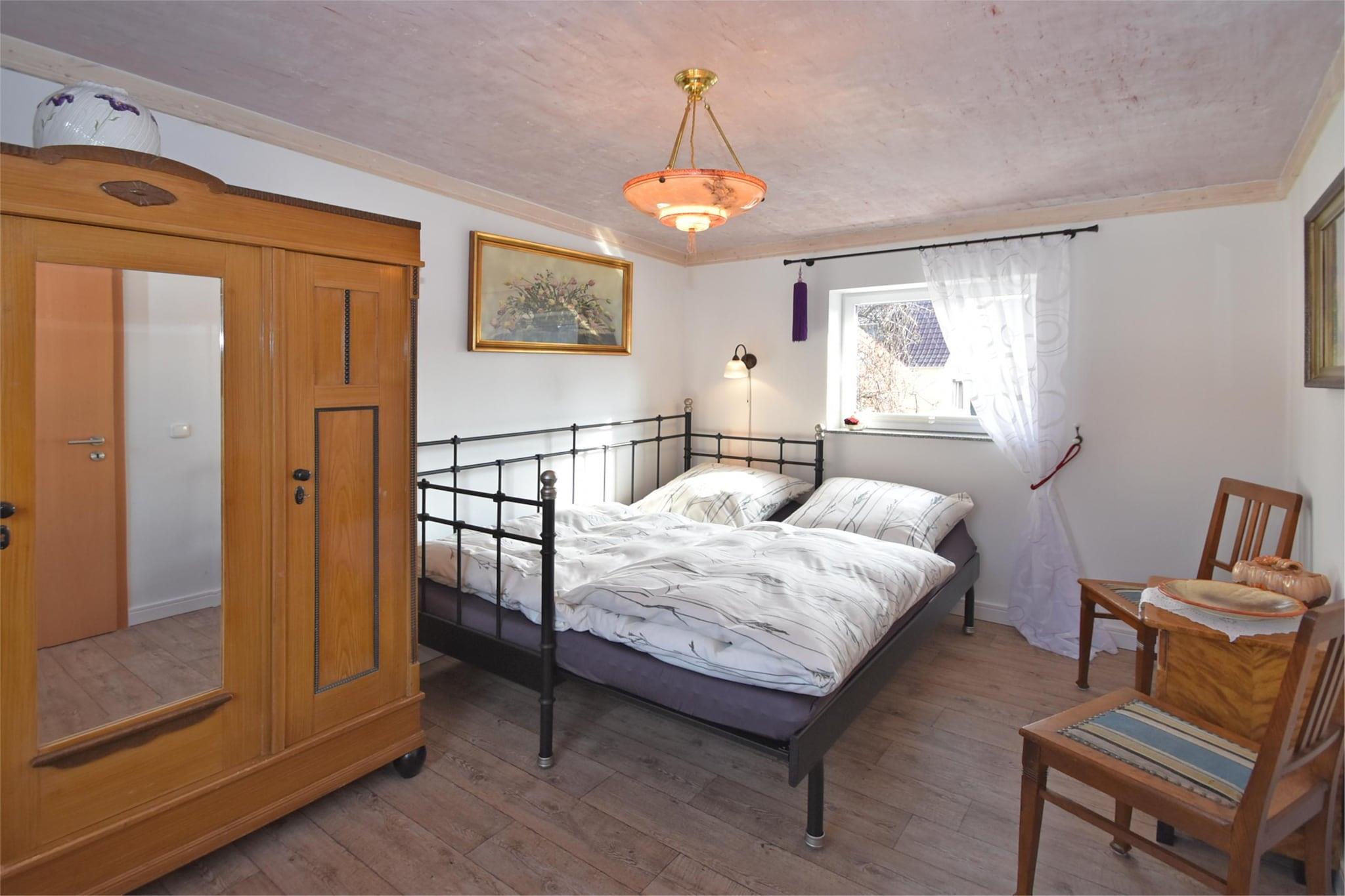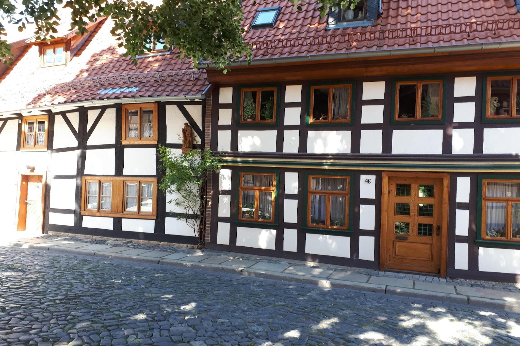 Denne charmerende to-etagers lejlighed i Wernigerode tilbyder en varm og stilfuld ferie kun 2 km fra byens centrum. Ideel til par eller små familier, det er en perfekt base for at udforske Harzen-regionens skatte. Besøg det eventyrlignende Wernigerode Slot, det fascinerende Luftfartsmuseum, eller tag en nostalgisk tur på Harzen Steam Railway til Brocken-toppen. Det historiske rådhus og Miniaturenpark Kleiner Harz lover også mindeværdige oplevelser. Indenfor har ejendommen en hyggelig stue med satellit-tv, pejs og stereoanlæg. Det rummelige køkken er fuldt udstyret med keramiske og elektriske komfurer, ovn, mikroovn, opvaskemaskine og kaffemaskine. To komfortable soveværelser med store dobbeltsenge sikrer afslappende nætter, mens badeværelset har bruser og hårtørrer. Ekstraudstyr som betalt vaskeri, gulvvarme og en privat terrasse med havemøbler og kulgrill tilføjer komforten. Omgivet af skovstier og tæt på skiløjper, swimmingpools og offentlig transport, er beliggenheden ideel til eventyr året rundt. Spisemuligheder i nærheden omfatter det rustikke Altwernigeröder Kartoffelhaus, den livlige Restaurant Hexenkessel og den elegante Restaurant 1835 Im Hotel Altora.