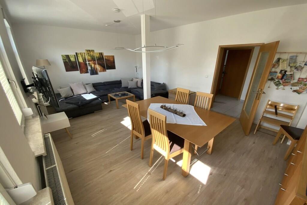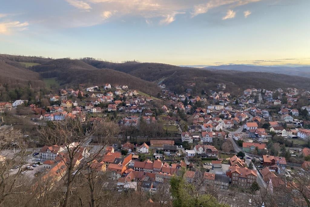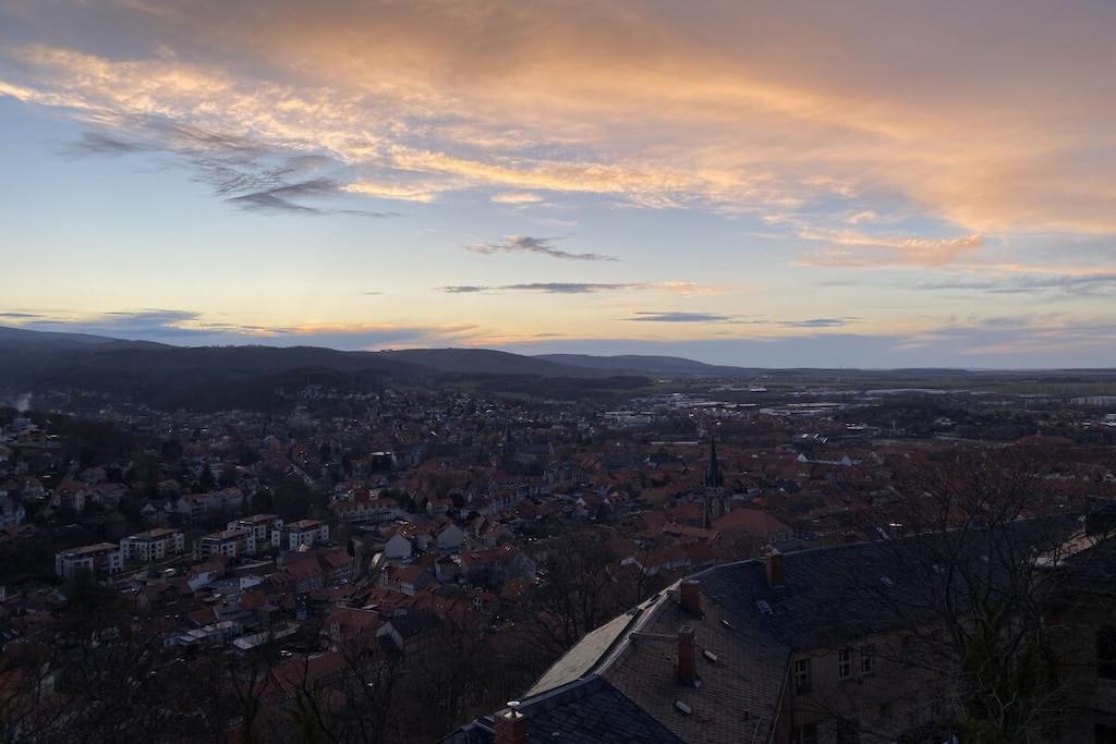 Cozy modern holiday apartment for 6 people + baby with a terrace close to the center in Wernigerode with a view of the castle from the living room.