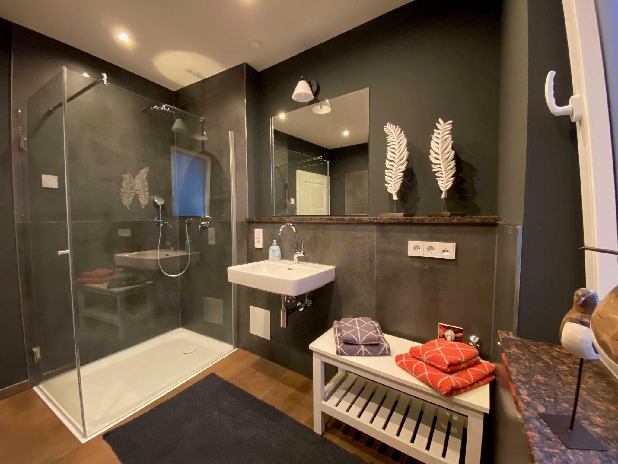 Bad mit bodenebener Dusche, Fön