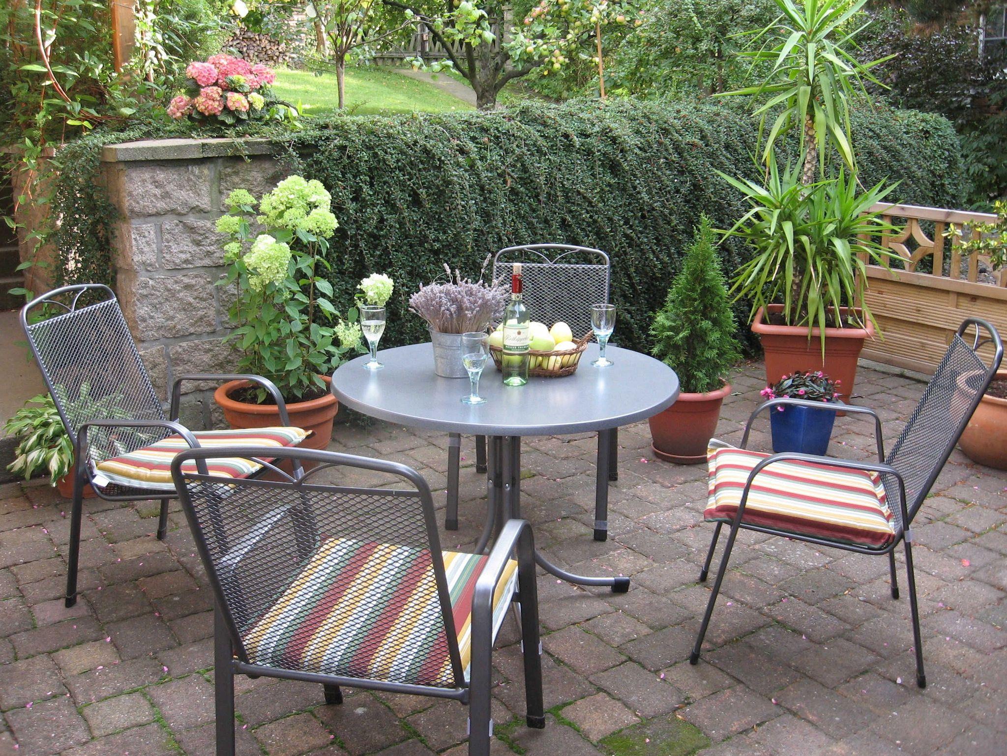 Im Sommer stehen Ihnen im Garten eine gemütliche Sitzgruppe und ein Grill zur Verfügung.