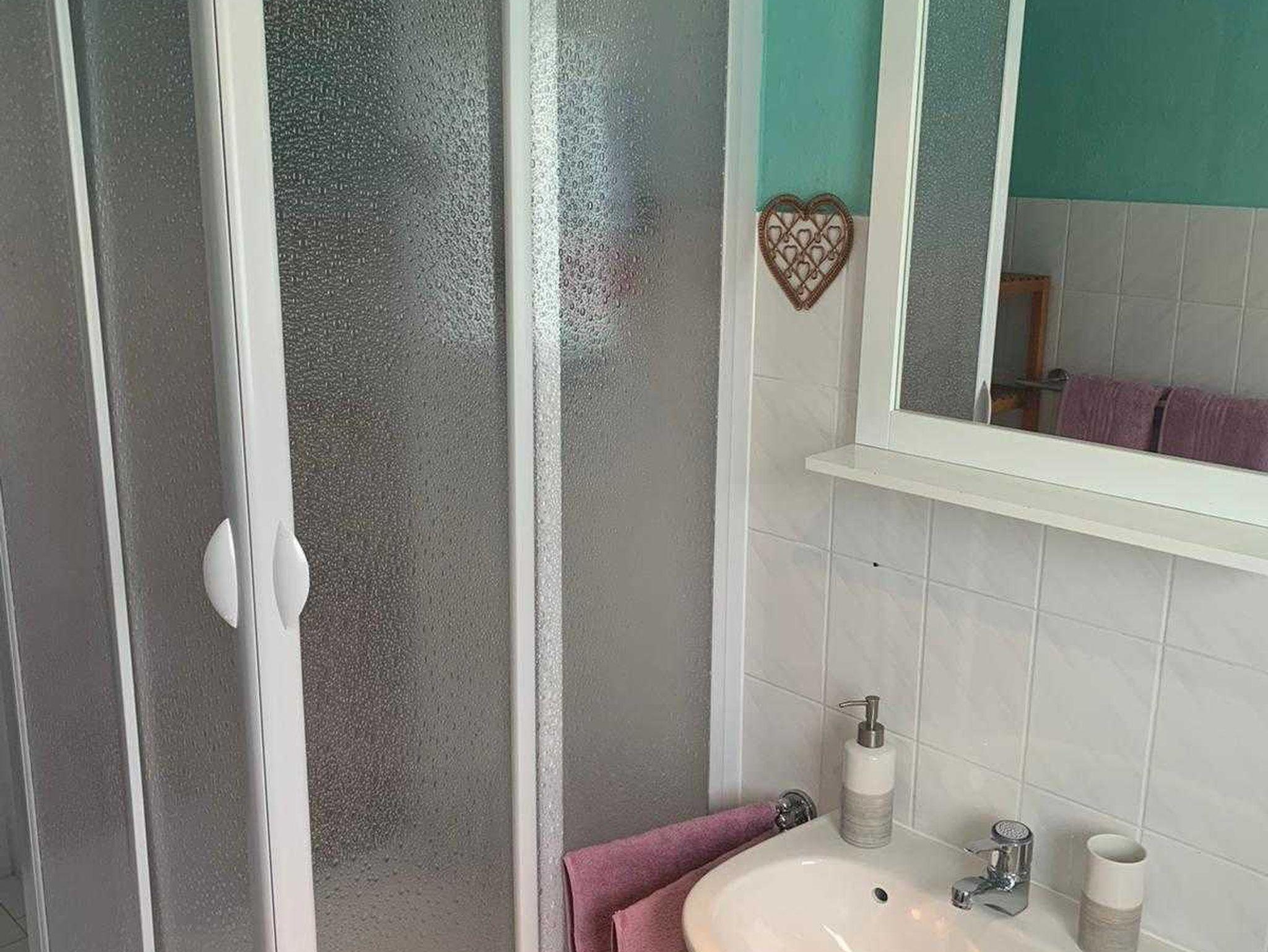 Dusche mit WC befinden sich in einer separaten Räumlichkeit. Bettwäsche, Handtücher und ein Fön sind vorhanden.