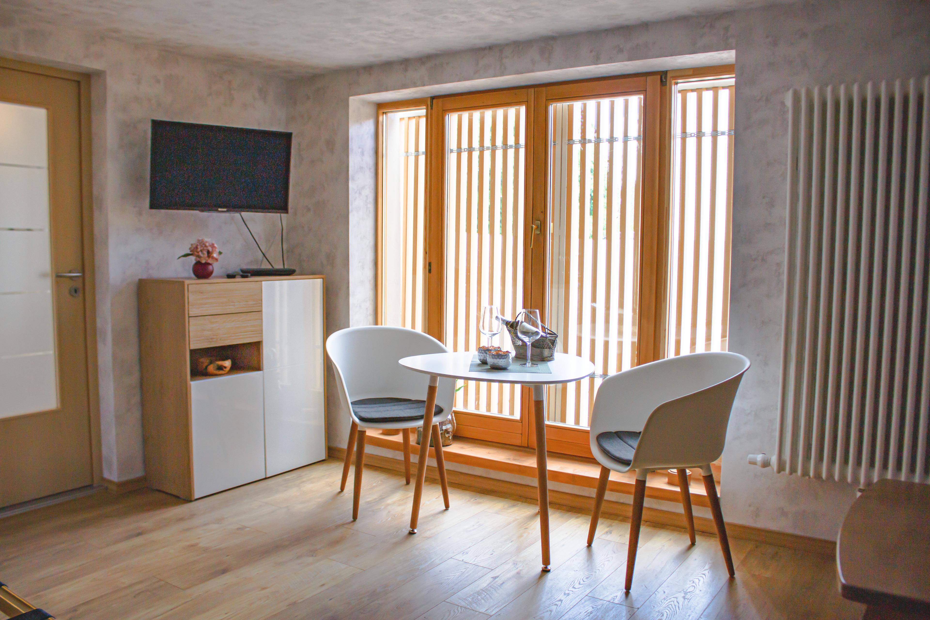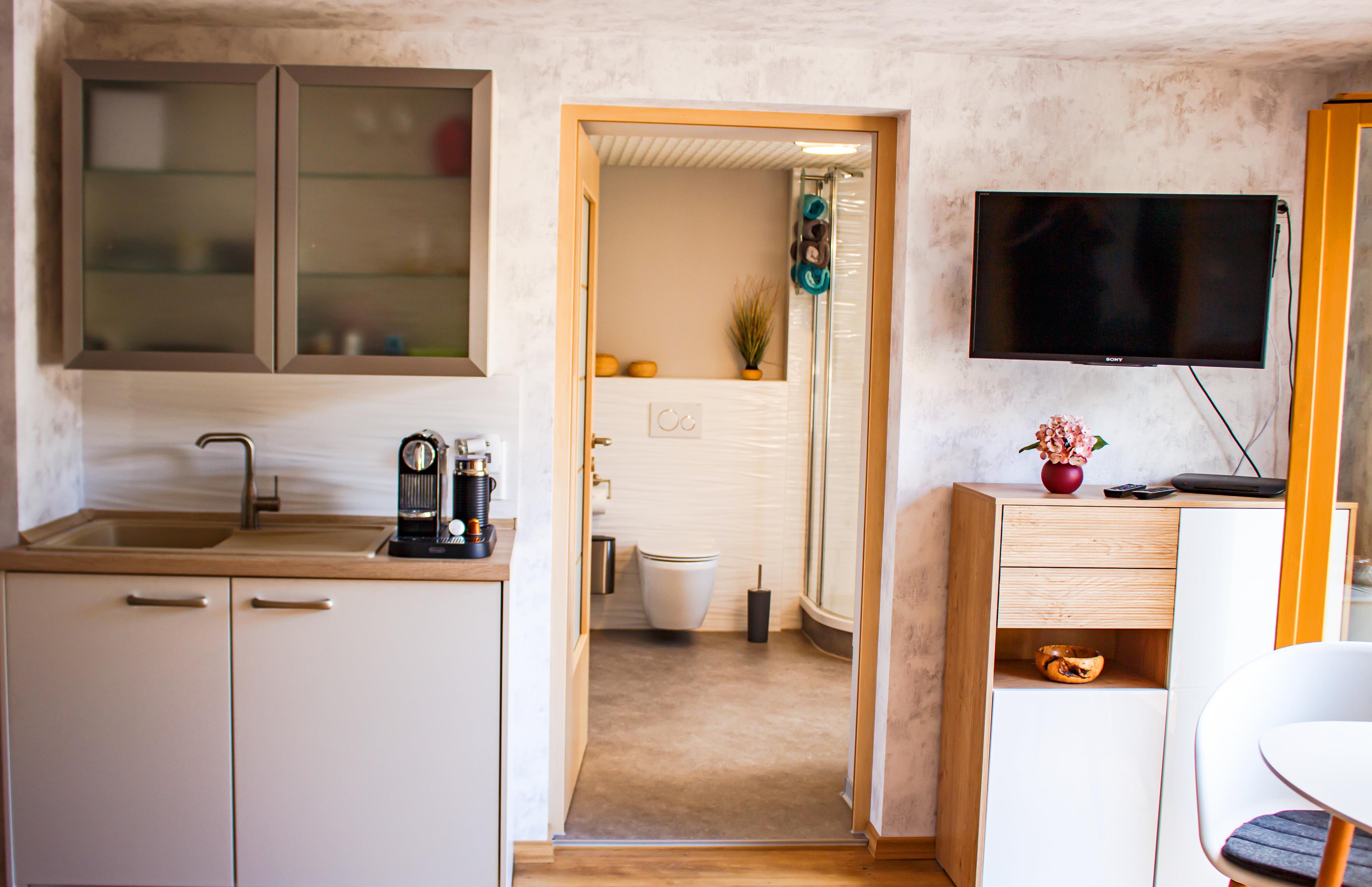 Für einen (Kurz-)Aufenthalt von 2 Personen ist das kleine Apartment im Erdgeschoss im Zentrum der Harzstadt optimal. Der kombinierte Wohn- und Schlafbereich bietet ein bequemes Doppelbett, eine Sitzmöglichkeit zum Frühstücken und Pläneschmieden mit Ausblick sowie einen kleinen Küchenblock mit Kühlschrank, Toaster, Wasserkocher und Kapsel-Kaffeemaschine. Wichtig: Keine Kochmöglichkeit!