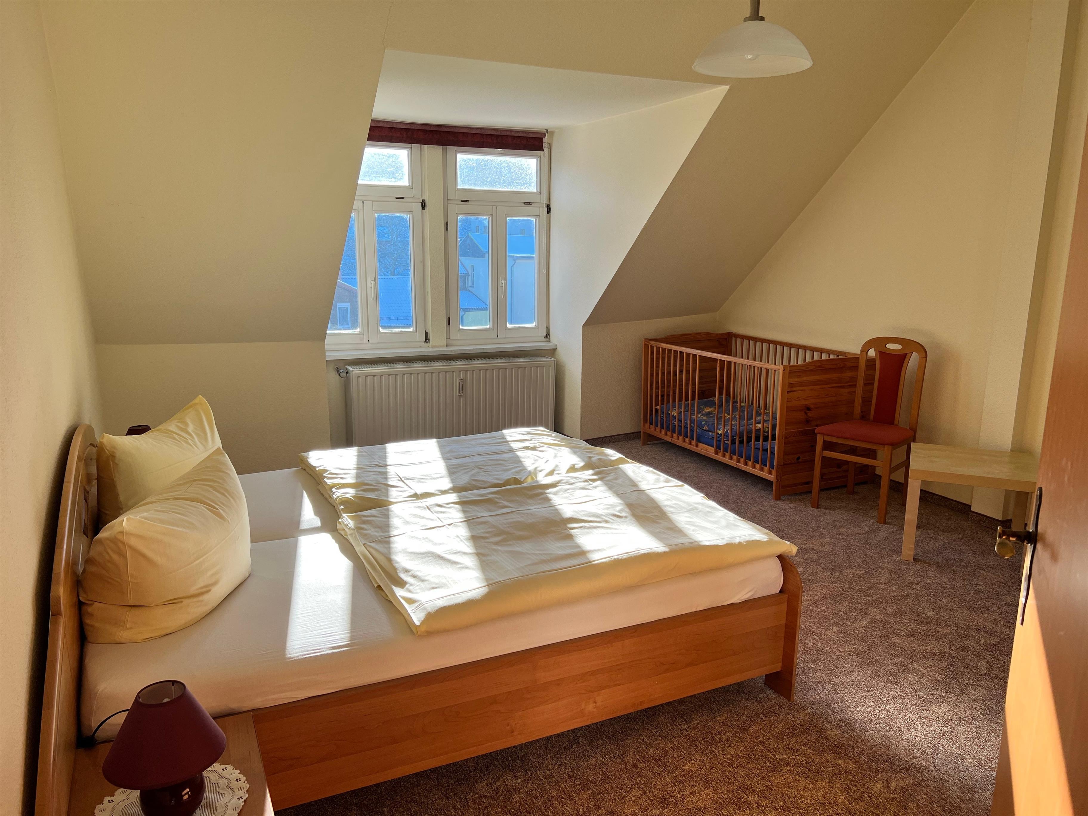 Sie haben 3 geräumige Schlafzimmer. 2 davon zur Hofseite. Ein Kindergitterbett steht bei Bedarf zusätzlich zur Verfügung.