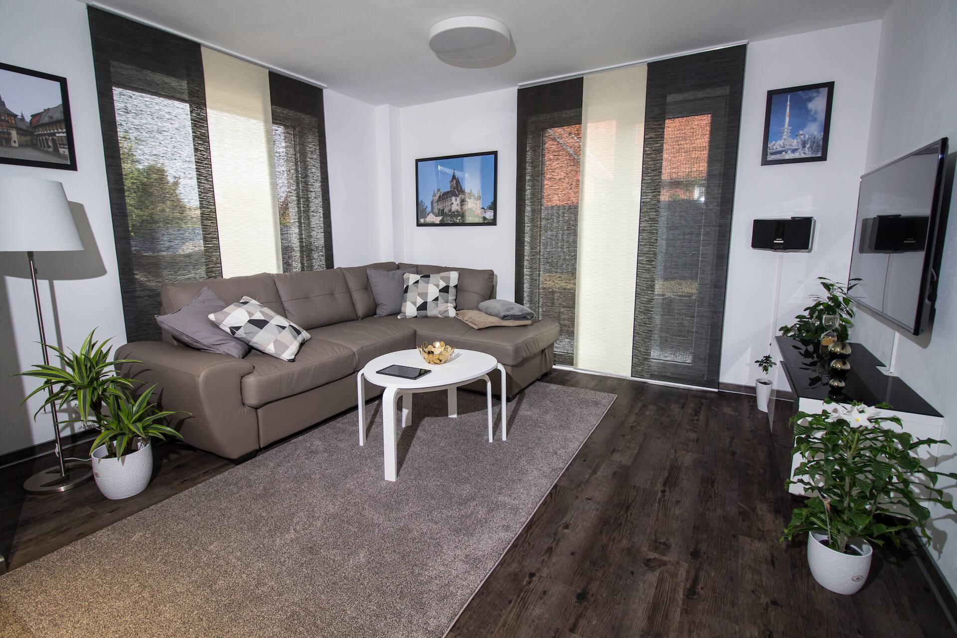 In dieser 2018 fertig gestellten exklusiven Ferienwohnung in Wernigerode, erwartet sie nicht nur moderne Einrichtung und Ausstattung, sondern auch eine top Lage, die zum Ausruhen und Verweilen einlädt, dennoch aber so gut gelegen ist, dass sie sowohl mit den öffentlichen Verkehrsmitteln, aber auch zu Fuß, in wenigen Minuten im Herzen von Wernigerode sind.