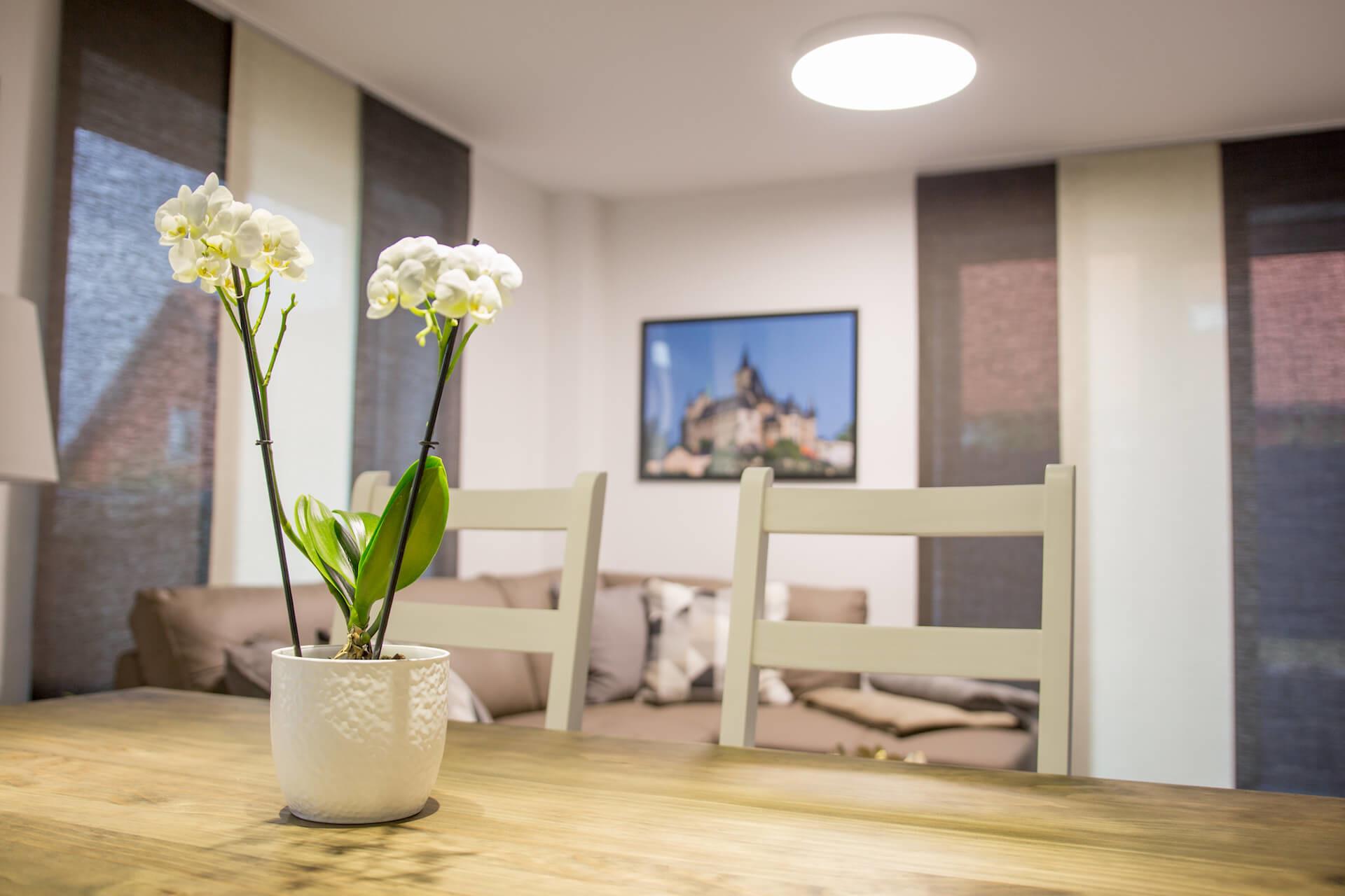 Einmalig in Wernigerode, eine Ferienwohnung im Loungestil der Extraklasse, auf 52 m² erleben Sie First Class pur, Urlaub der besonderen Art. Die exklusiv eingerichtete Wohnung mit zwei separaten Schlafräumen und zusätzlichem Schlafsofa, liegt nicht nur ruhig am Ortsrand, sondern optimal verkehrsnah und nur wenige Minuten vom historischen Stadtkern entfernt.