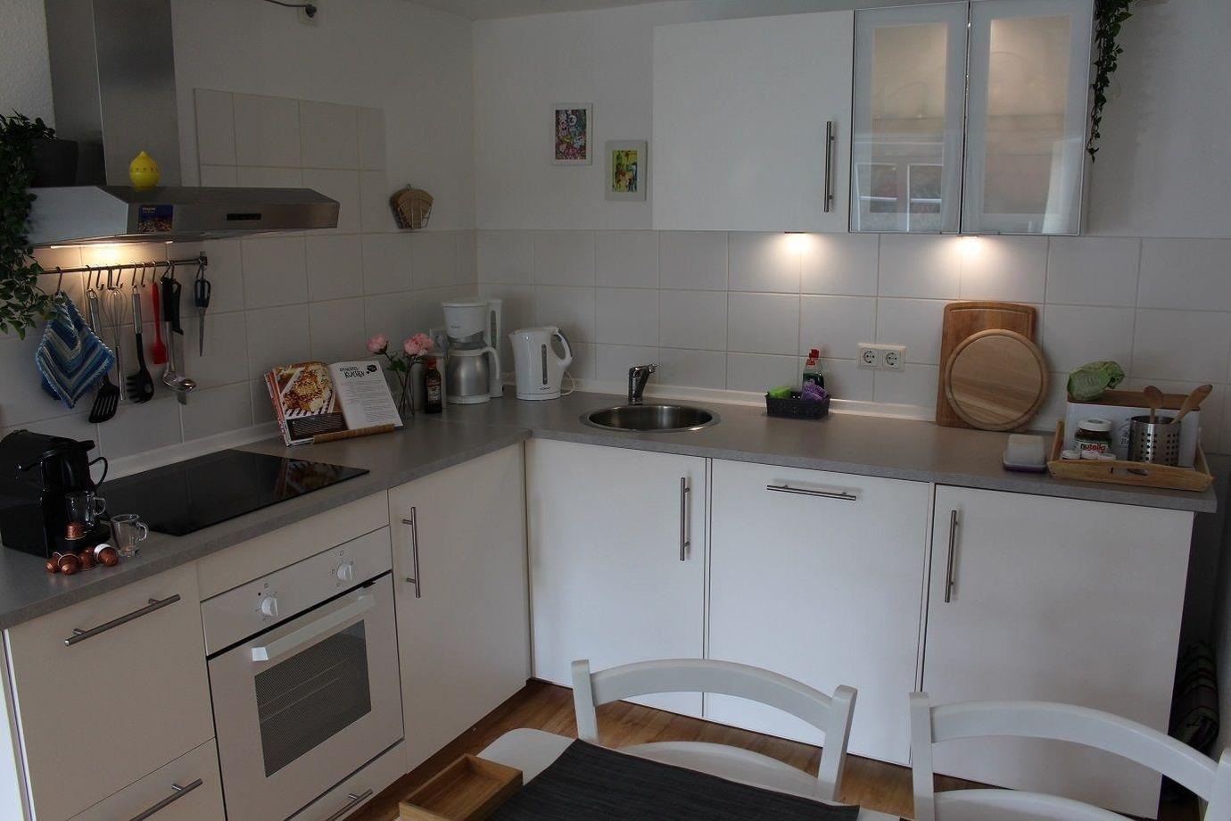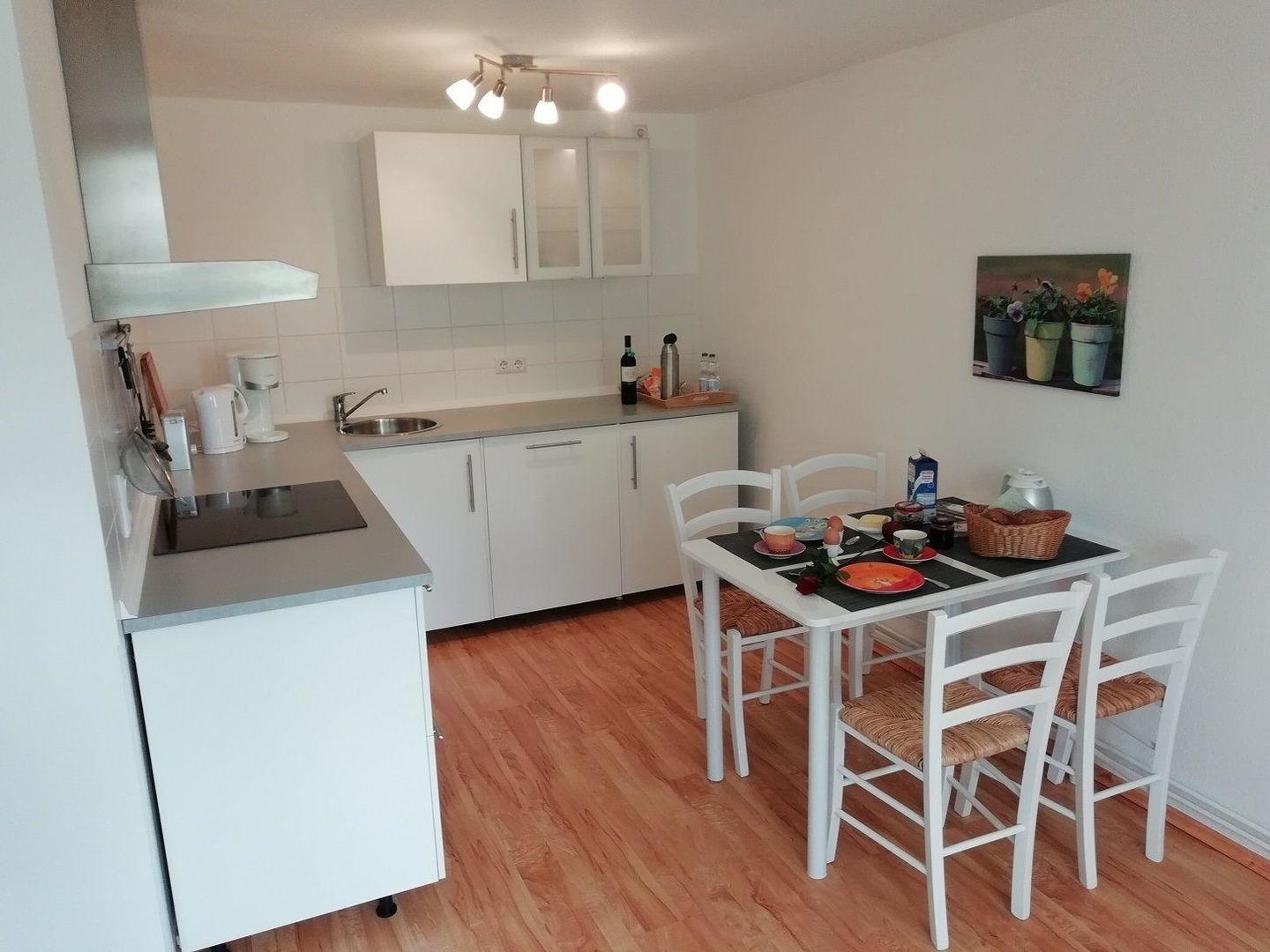 Helles Wohn-/ Esszimmer mit modernem Wohnkonzept. Neue und voll ausgestatteter Küche in attraktivem Ambiente.