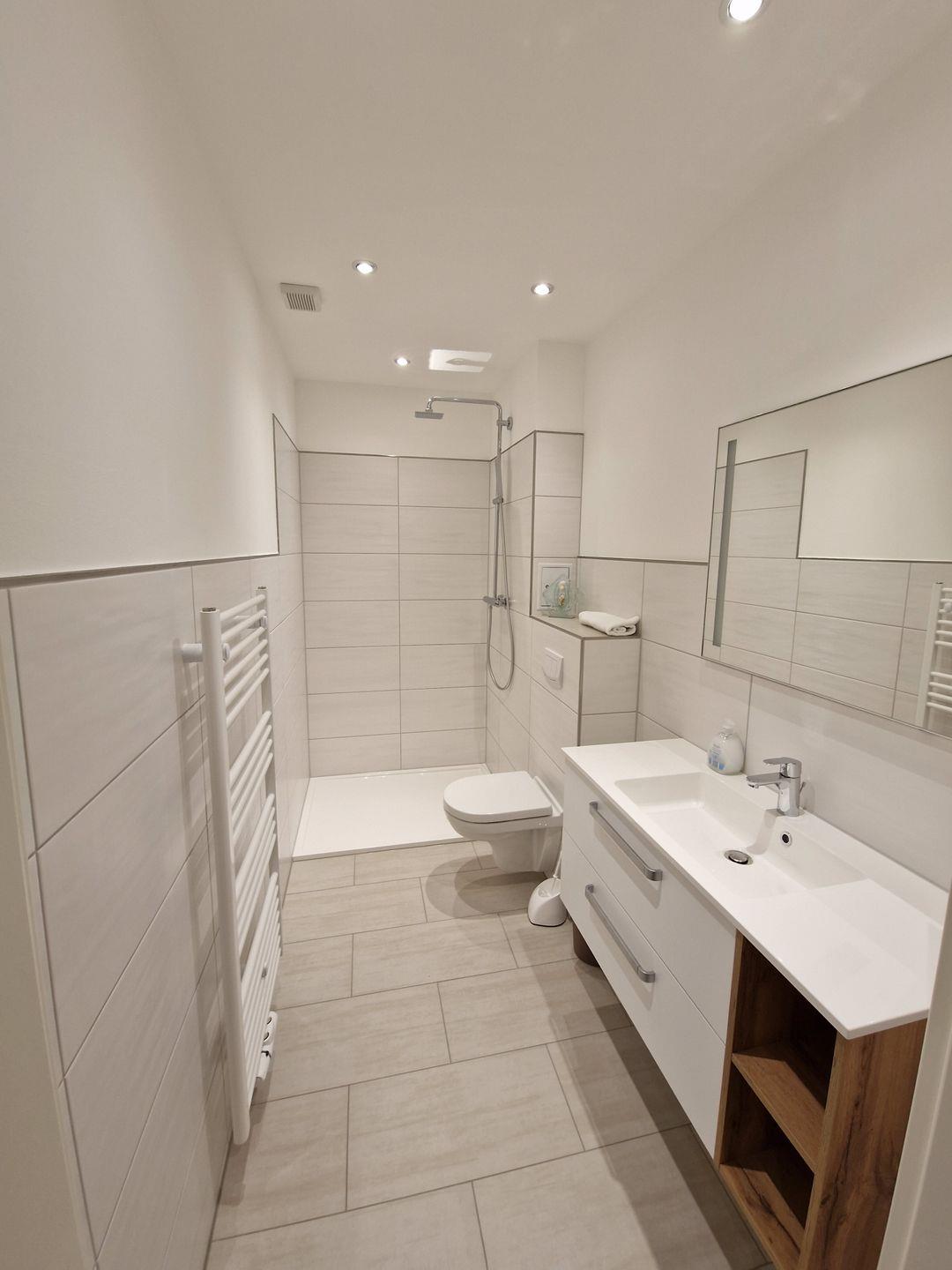 Es gibt ein modernes Bad mit Dusche und eine voll ausgestattete Küche, die Ihnen alles bietet, was Sie für einen angenehmen Aufenthalt benötigen.