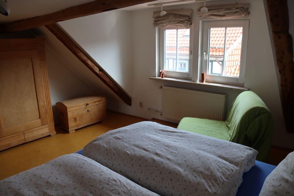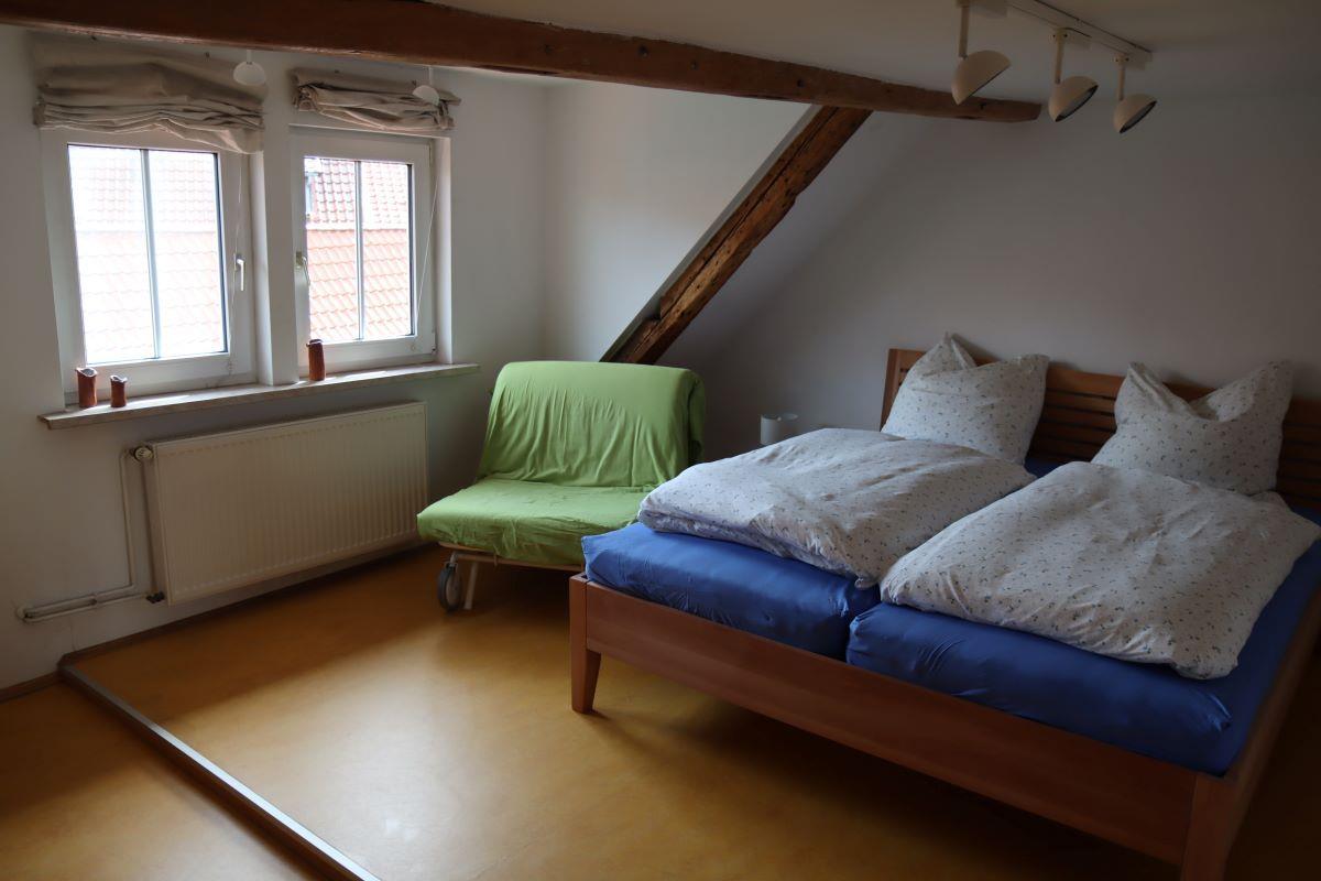 Über eine weitere Holztreppe erreichen Sie die nächste Etage mit einem weiteren Schlafzimmer für 2 Personen mit der Möglichkeit einer Aufbettung.