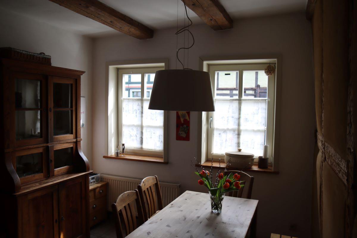 Verbringen Sie Ihren Harzurlaub in der wunderschönen Altstadt von Wernigerode in dem authentisch eingerichteten Fachwerkhaus Anno 1720 mit seinem einladenden Innenhof. Das Ferienhaus verfügt über eine Wohnküche, ein gemütliches Wohnzimmer, zwei Schlafzimmer für 4+1 Person(en), ein Badezimmer, ein separates WC sowie einen sonnigen und grünen Innenhof.