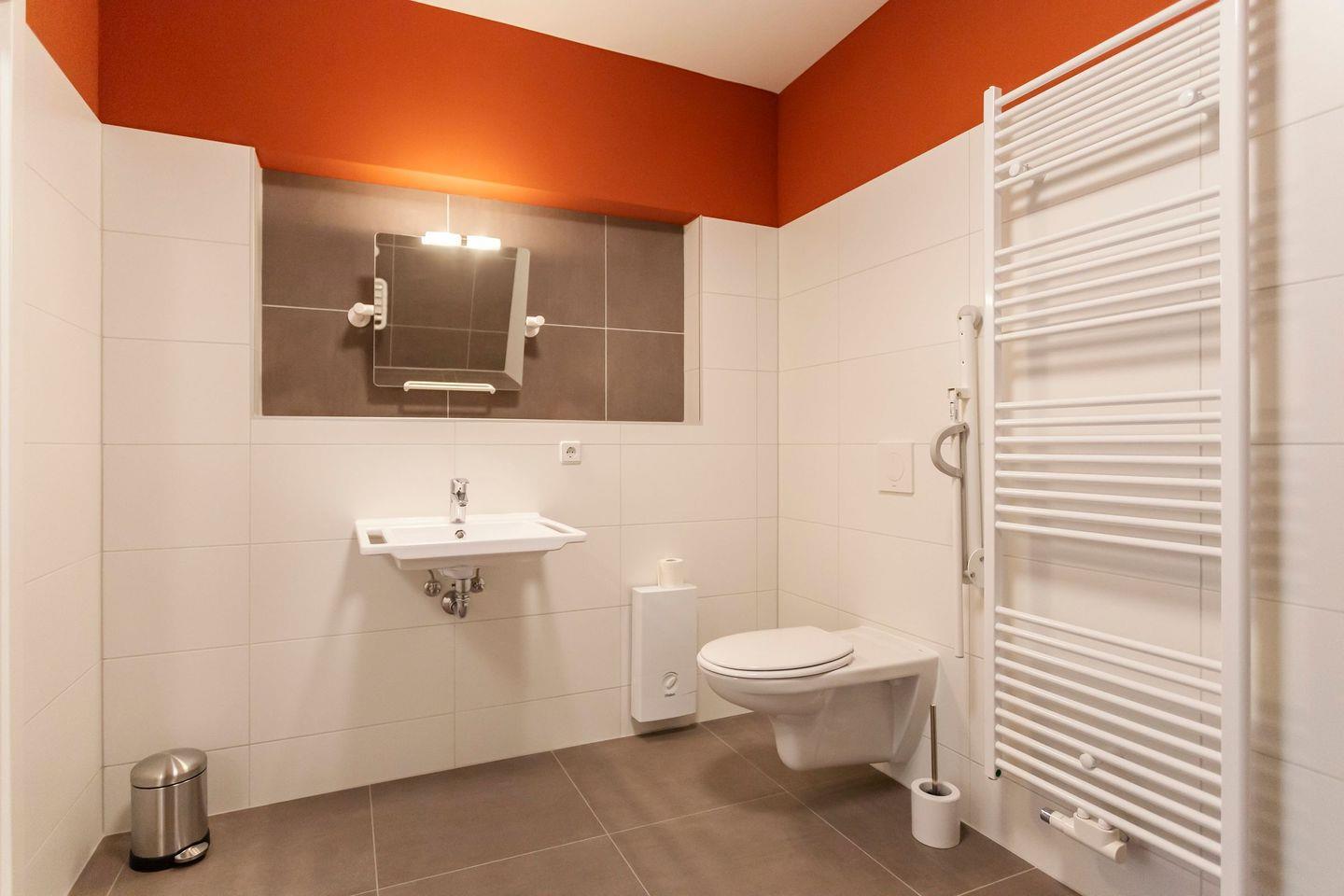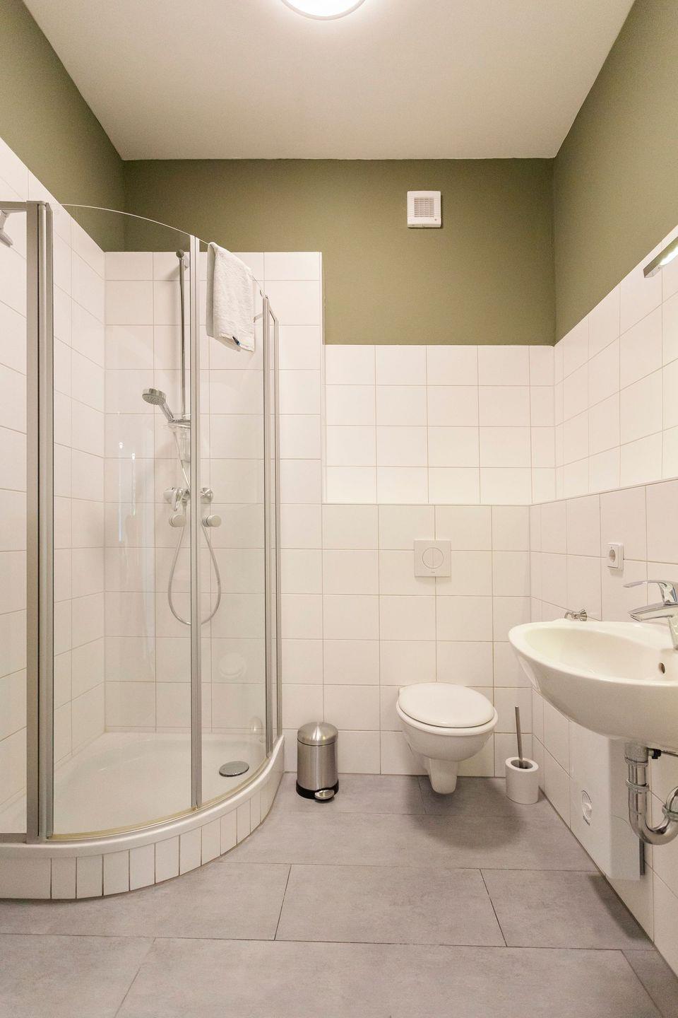 Ein geschmackvolles, barrierefreies Bad rundet das Wohnerlebnis ab. Zur Wohnung gehört auch ein kostenloser Parkplatz direkt am Haus.