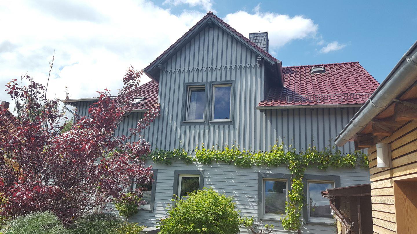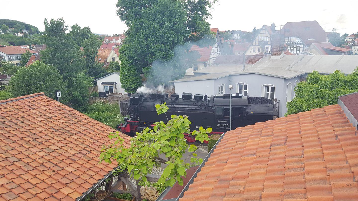 Eine moderne Ferienwohnung im Obergeschoss mit Blick auf die Brockenbahn, in ruhiger zentraler Lage von Wernigerode. Sie können so gut wie jedes beliebte Ausflugsziel in Wernigerode zu Fuß erreichen. Die liebevoll eingerichtete Wohnung mit 2 Schlafräumen und 4 Schlafmöglichkeiten bietet genügend Platz für die Familie. Ein bequemes Sofa im Wohnbereich kann zu einem komfortablen Bett mit Federkernmatratze umfunktioniert und somit zusätzliche Schlafmöglichkeiten für 2 Personen geschaffen werden. Es gibt 2 kleine Badezimmer mit jeweils einer Dusche und einem WC. Das Wohnzimmer mit Flachbildfernseher und der Essbereich mit Durchreiche zur Küche bieten sich zum geselligen Verweilen an. Vom Balkon mit 6 Sitzmöglichkeiten hat man einen schönen Blick auf die unmittelbar vorbeifahrende Harzer Schmalspurbahn. Auf dem Grundstück sind 2 Parkplätze für unsere Gäste reserviert.