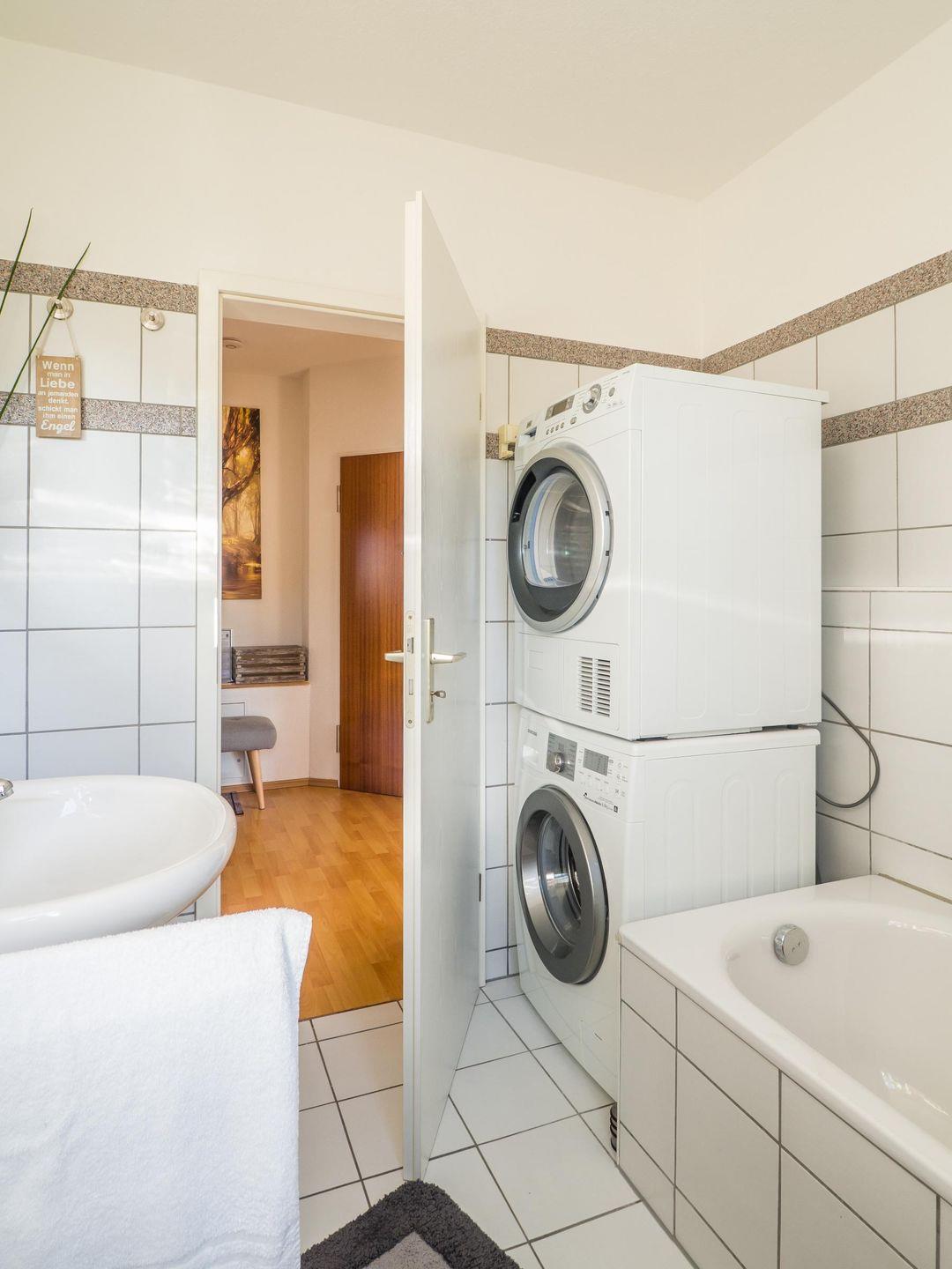 Im Badezimmer ist eine Badewanne mit Duschwand und Waschmaschine vorhanden. Im ganzen Haus ist W-LAN frei verfügbar.
