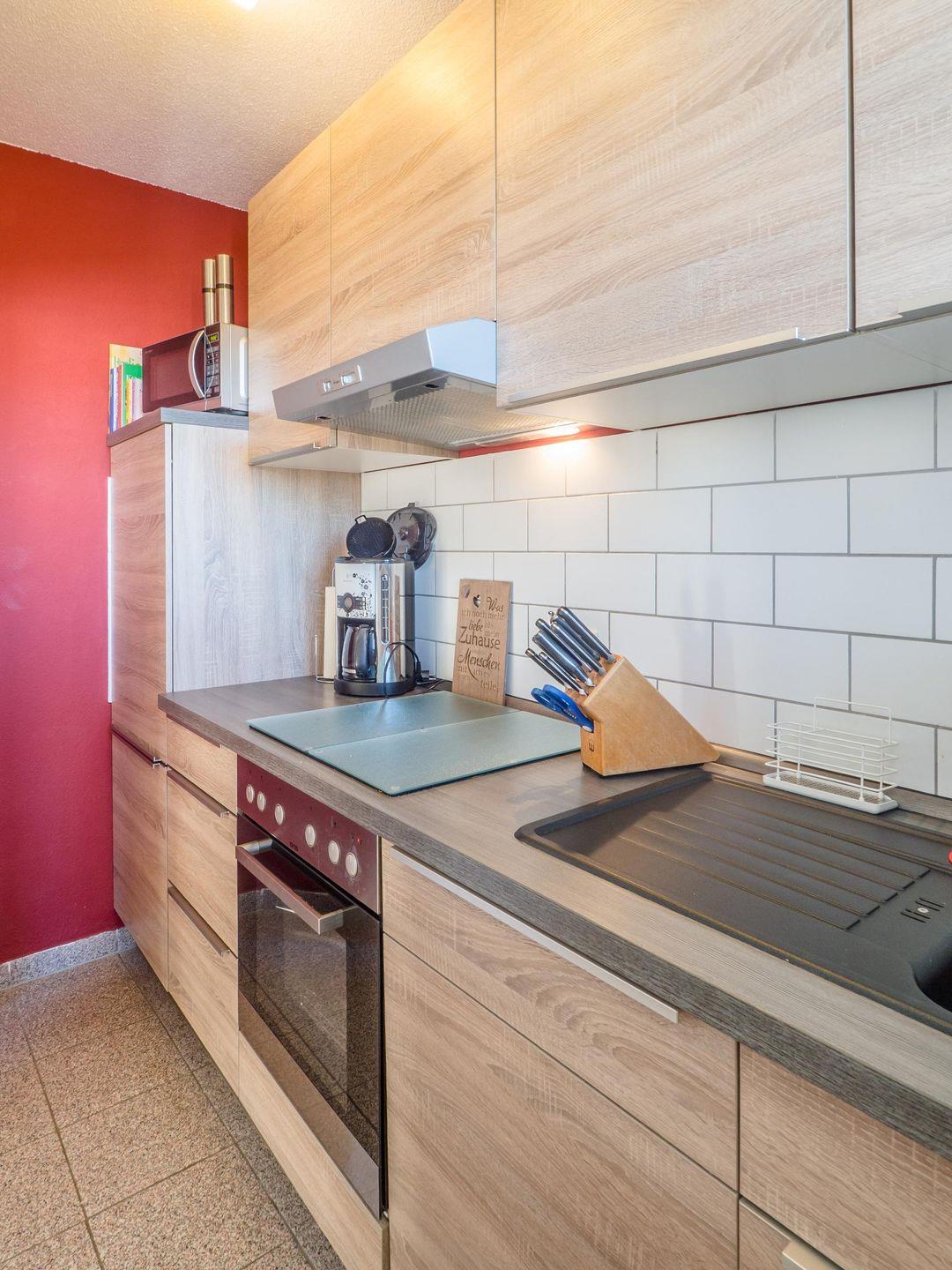 Im Wohnraum befinden sich eine bequeme Sitzcouch mit Tisch und ein TV-Gerät. Hier lädt ein Esstisch mit Stühlen zum verweilen ein. Die voll ausgestattete Küche inkl. Geschirrspüler lässt keine Wünsche übrig.