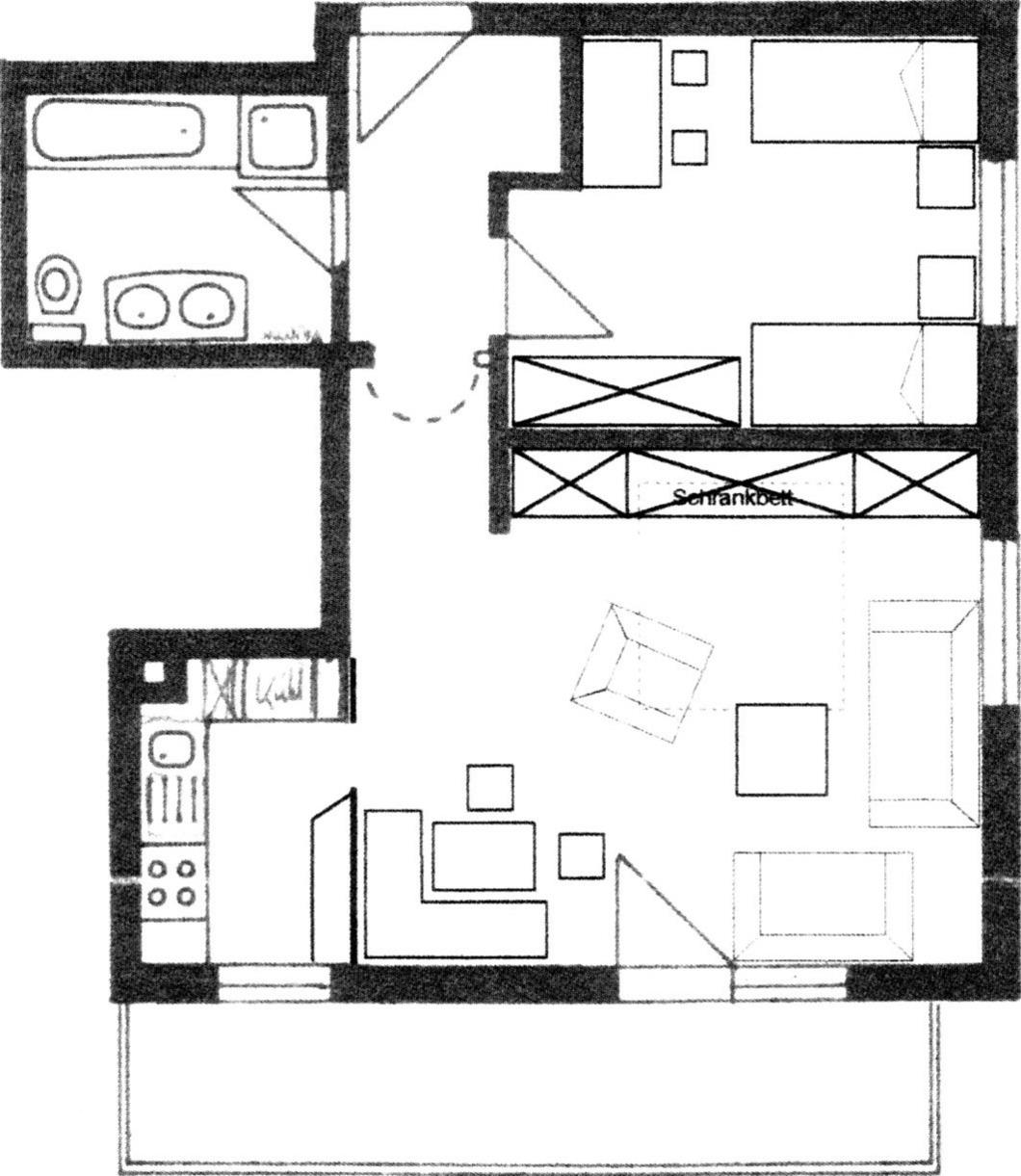 Im Wohnzimmer erwarten Sie Fernseher, Musikanlage und das praktische Schrankdoppelbett für alle Fälle.