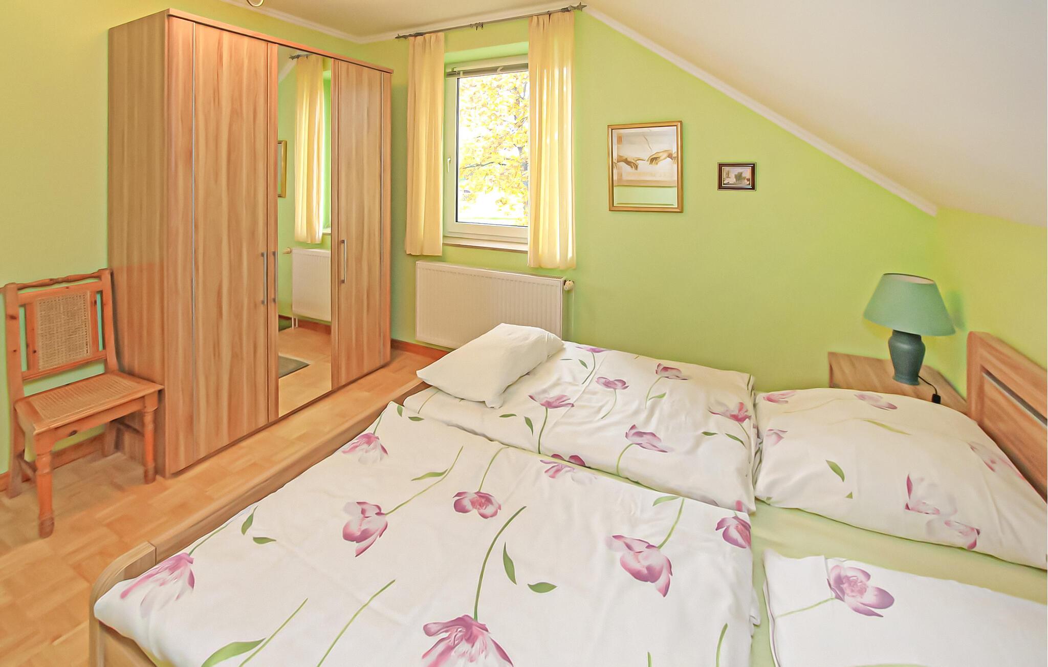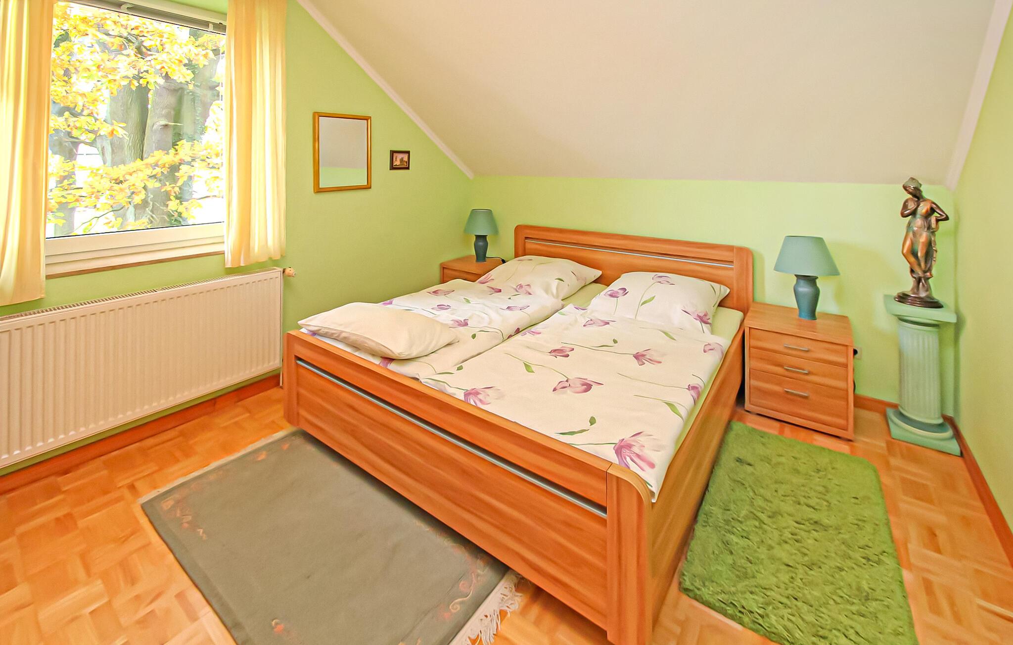 Ferielejligheden ligger sammen med to andre ferielejligheder på en velholdt, 3000 kvadratmeter stor bolig- og naturejendom direkte ved forbindelseskanalen mellem Ellenbogensee og Pälitzseen. Travl skibstrafik i løbet af sæsonen giver mange interessante oplevelser blot ved at observere dem. Lejligheden har direkte adgang til kanalen. Svømning er muligt ved Großer Pälitzsee omkring 150 meter væk. Der kan benyttes flere udendørs siddepladser, et område til solbadning, en grill, et centralt vaskerum, et fællesrum, et cykelrum og en parkeringsplads. Ferielejligheden er beliggende separat på øverste etage i bolig- og sommerhuset. Den har opholdsstue med polstrede møbler, sovesofa, tv, radio, spisebord, soveværelse med dobbeltseng, køkken med el-komfur med ovn, køleskab med fryser, mikroovn og diverse køkkenmaskiner samt badeværelse med bl.a. bad og toilet. Der er også centralvarme og en barneseng, der kan tilføjes. Følgende ydelser er inkluderet i den samlede pris: slutrengøring, sengelinned, håndklæder, vand og energi. Betales på stedet: spaskat (april-oktober). Strasen er et feriested midt i Mecklenburgs lille sølandskab, cirka 8 km syd for Wesenberg. Dette område imponerer med sin originalitet og sine mange søer, som er forbundet med hinanden ved at forbinde kanaler, hvoraf nogle er rustikke. Især vandvandrere, vandsportsentusiaster og lystfiskere finder de bedste forhold her. Takket være det veludbyggede netværk af cykelstier får cyklisterne også noget for pengene. Restaurant, kiosk, båd- og cykeludlejning i byen.
