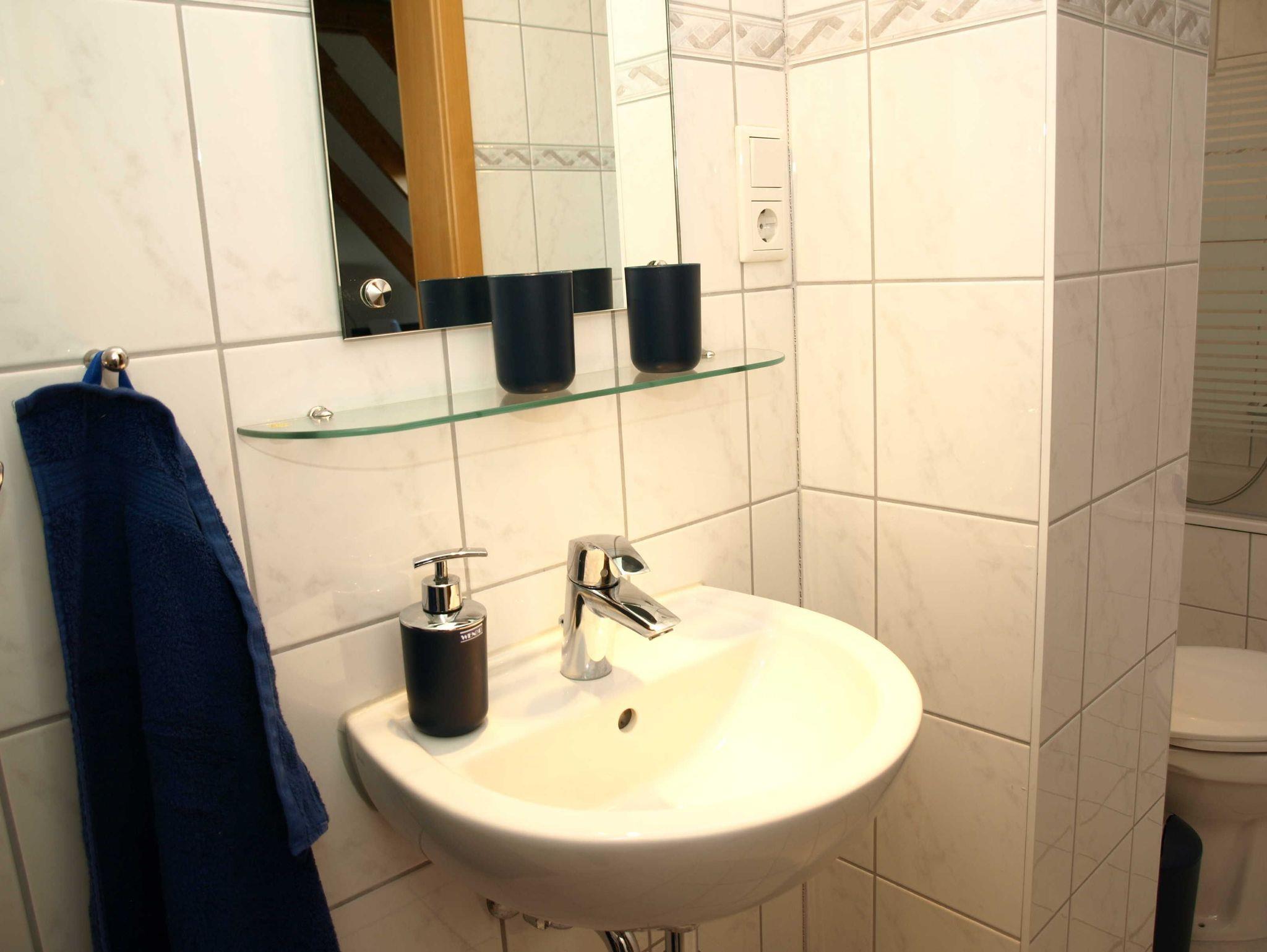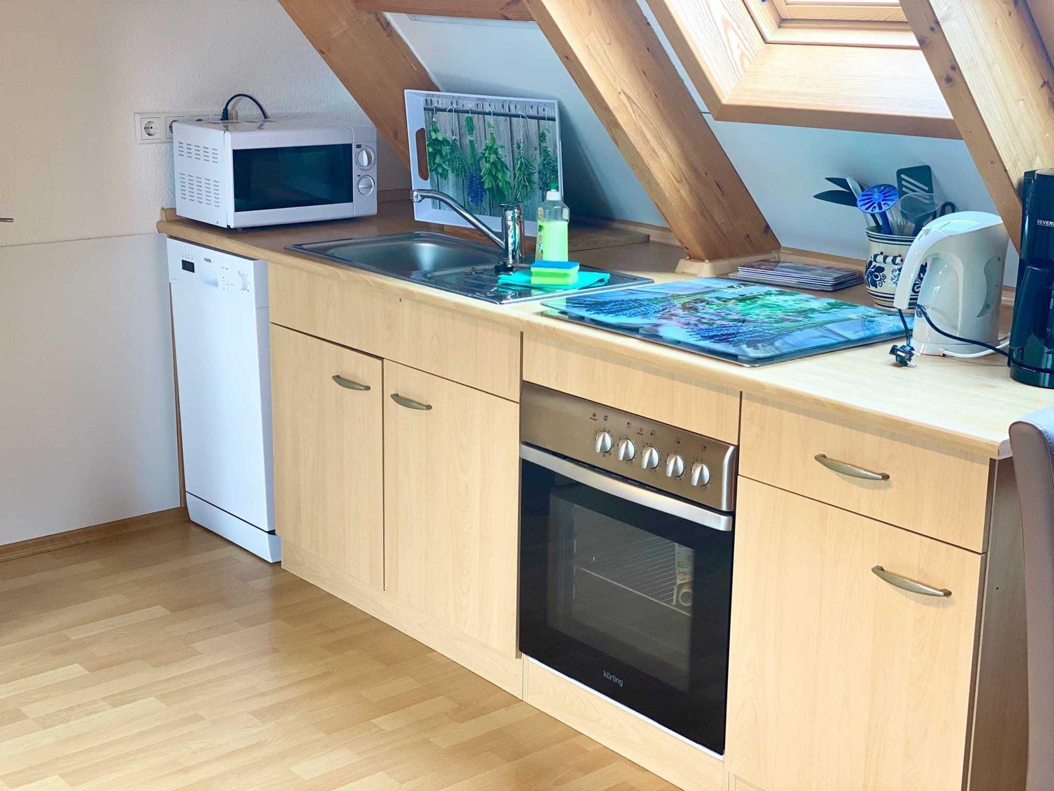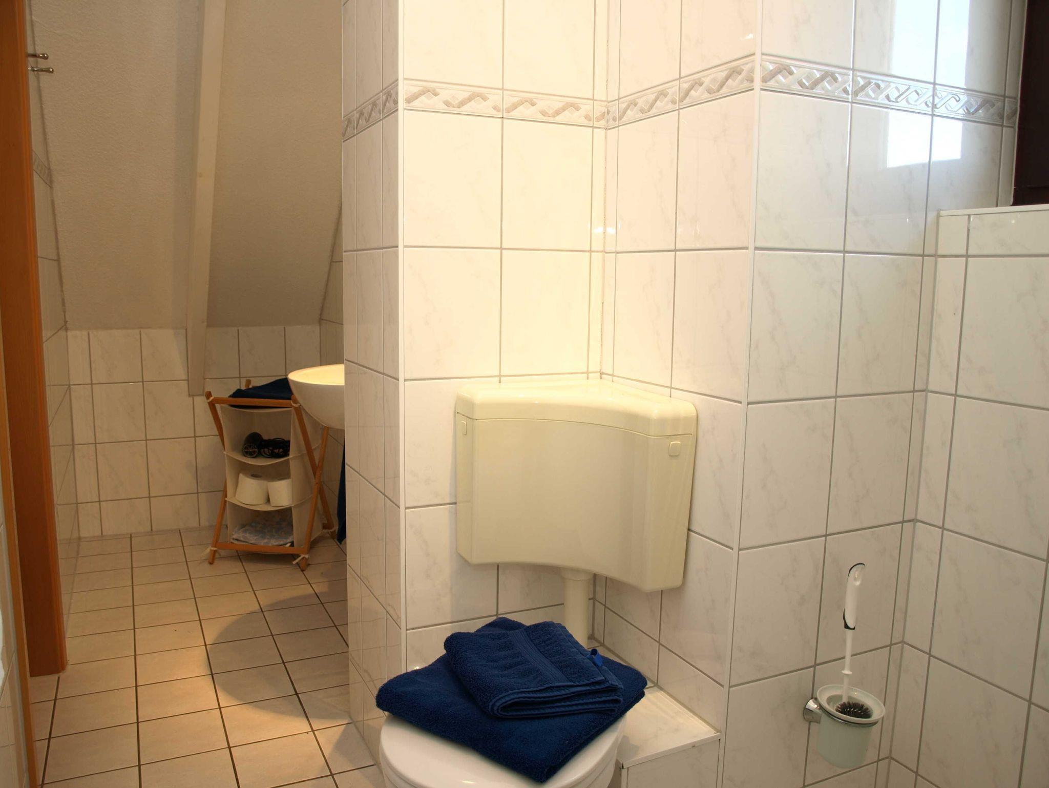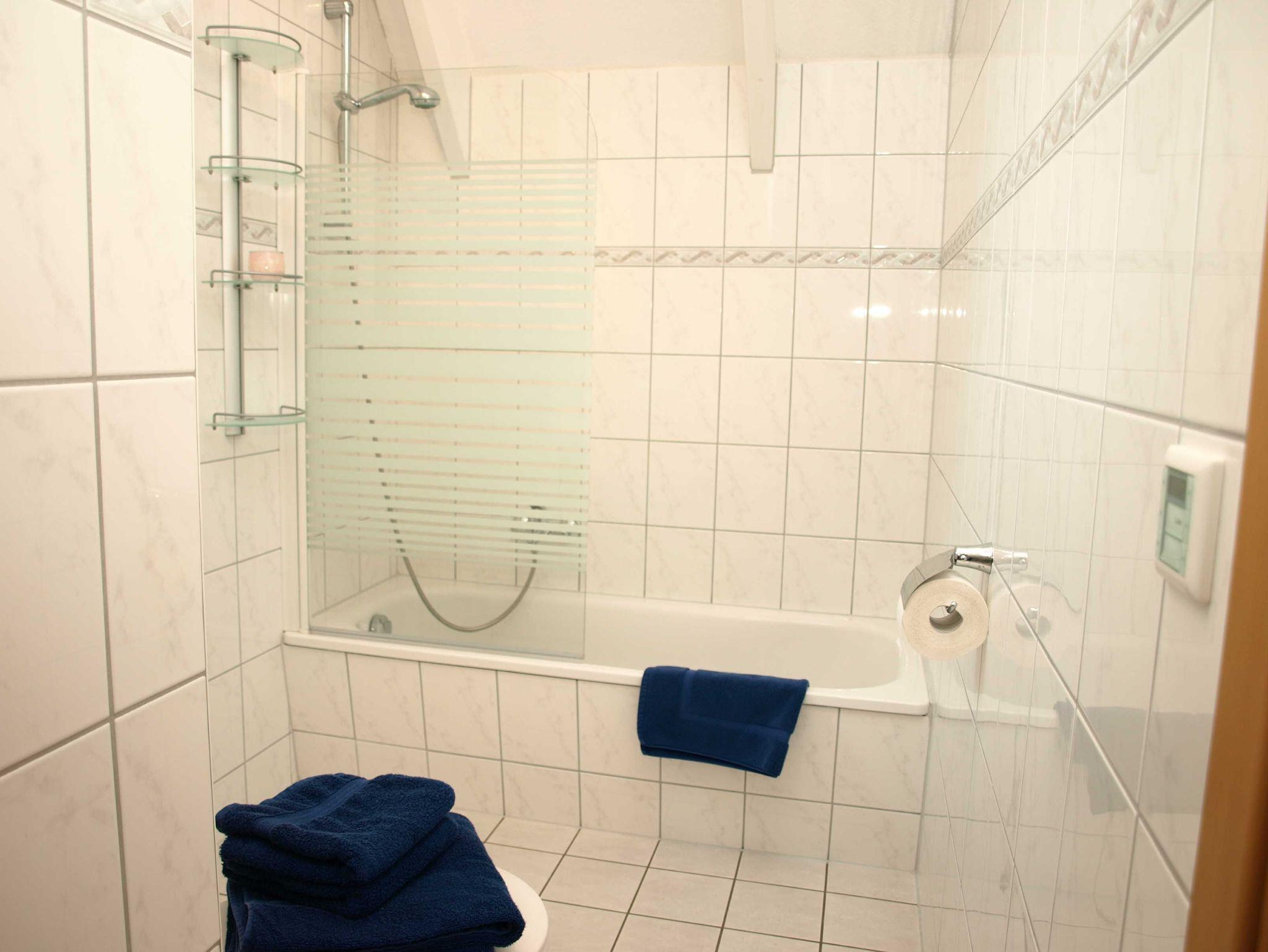 Das Bad/WC ist mit einer Badewanne ausgestattet. Außer dem Flur haben alle Räume Fußbodenheizung. In der Küche findet man alle elektrischen Geräte, die gebraucht werden, vom Toaster über Kaffeemaschine(auch Senseo), Mikrowelle, Herd mit Backofen, Kühlschrank mit 4*Fach bis Spülmaschine. Geschirr und Besteck ist in ausreichender Anzahl vorhanden. Handtücher (auch Geschirrtücher) und Bettwäsche. Grundausstattung Toilettenpapier, Küchentücher, Reinigungsmittel/Spültapps sind bei Anreise vorhanden.