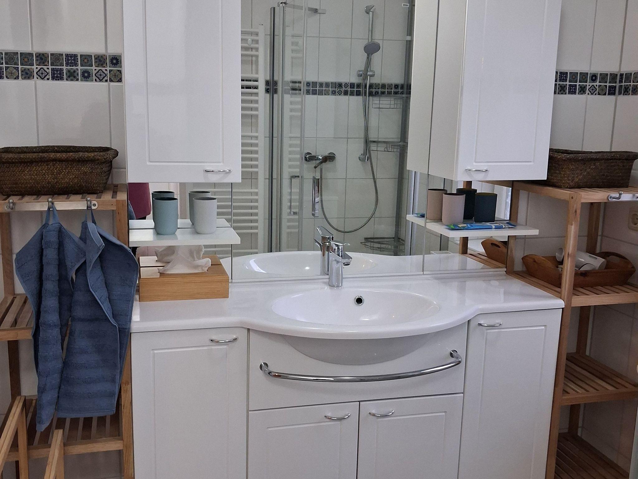 Unser Ferienhaus ist bis auf die Eingangsstufe ebenerdig. Die 70 m2 bestehen aus 2 Schlafzimmern, 1 Wohnzimmer, 1 Küche, 1 Gäste WC, 1 Bad mit Fußbodenheizung und ebenerdiger Dusche. Im Wohnzimmer und in einem der Schlafzimmer gibt es einen Flachbildfernseher. Die neue Küche ist modern ausgestattet. (siehe Fotos). Im Haus befinden sich viele Gesellschaftsspiele, Literatur, Hörspiele und eine kleine Auswahl von DVDs.