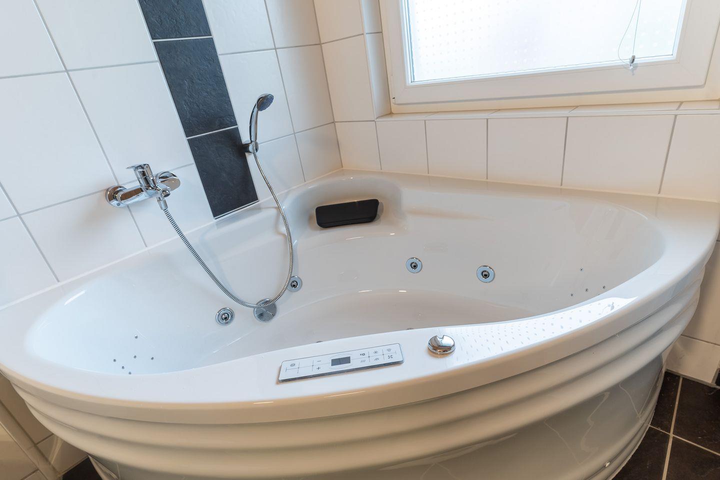 Das komfortable Duschbad des Ferienhauses verwandelt sich in einen echten Wellnessbereich. Treten Sie ein und spüren Sie das angenehme Gefühl der Fußbodenheizung unter Ihren Füßen, während Sie im wohltuenden Whirlpool die Alltagssorgen einfach wegspülen. Die Sauna lädt Sie ein, Körper und Seele zu entspannen und den Stress des Alltags hinter sich zu lassen.