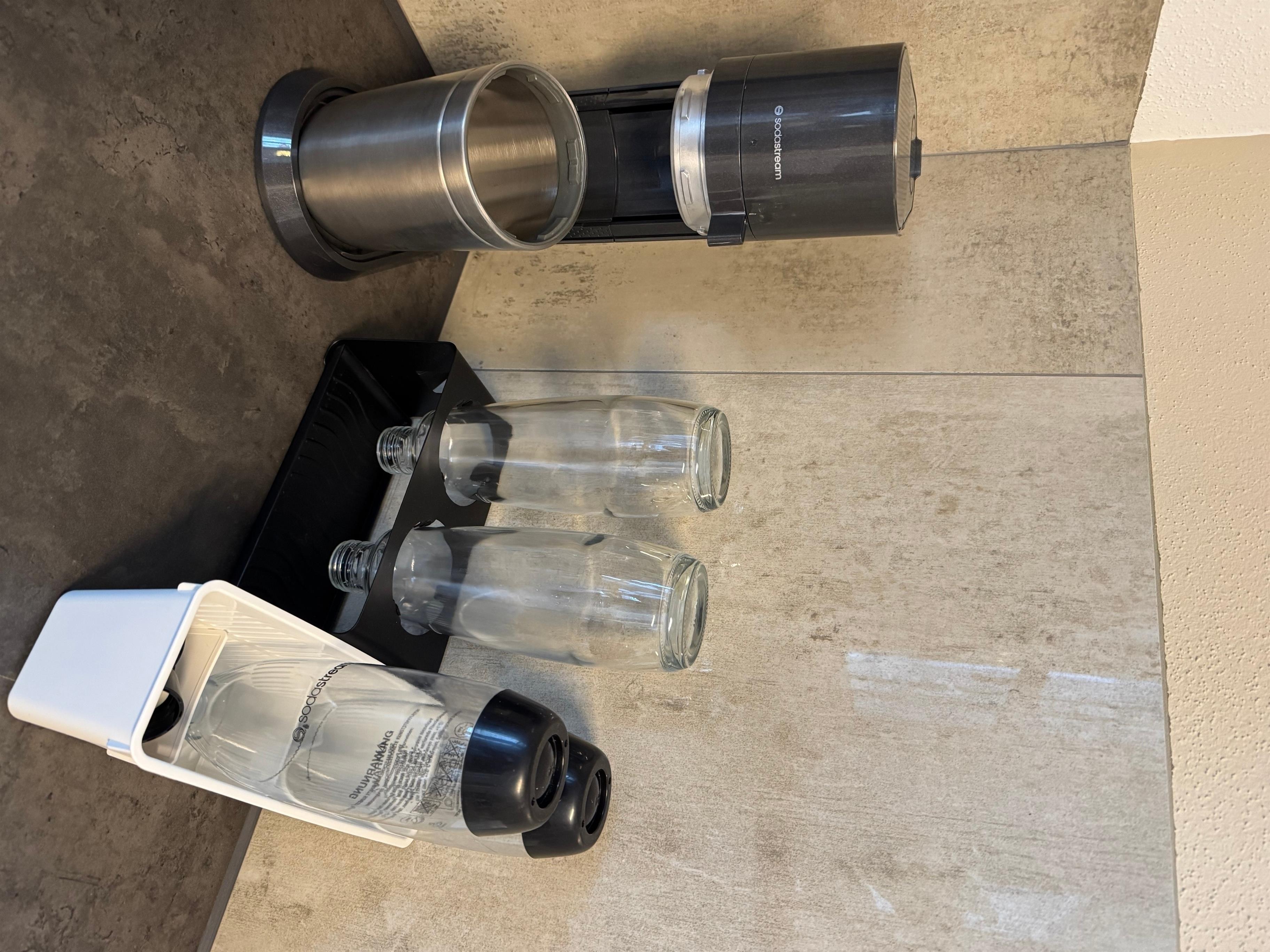 Neue Küche mit neuen Elektrogeräten, Mikrowelle, Geschirrspüler (mit Tabs und Salz) und Kühl-Gefrierkombination