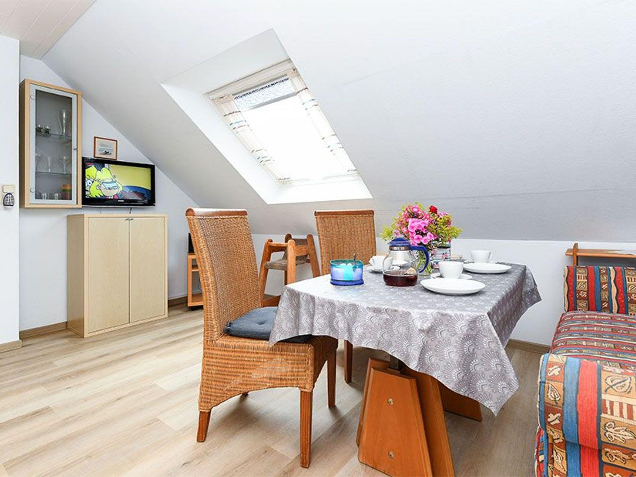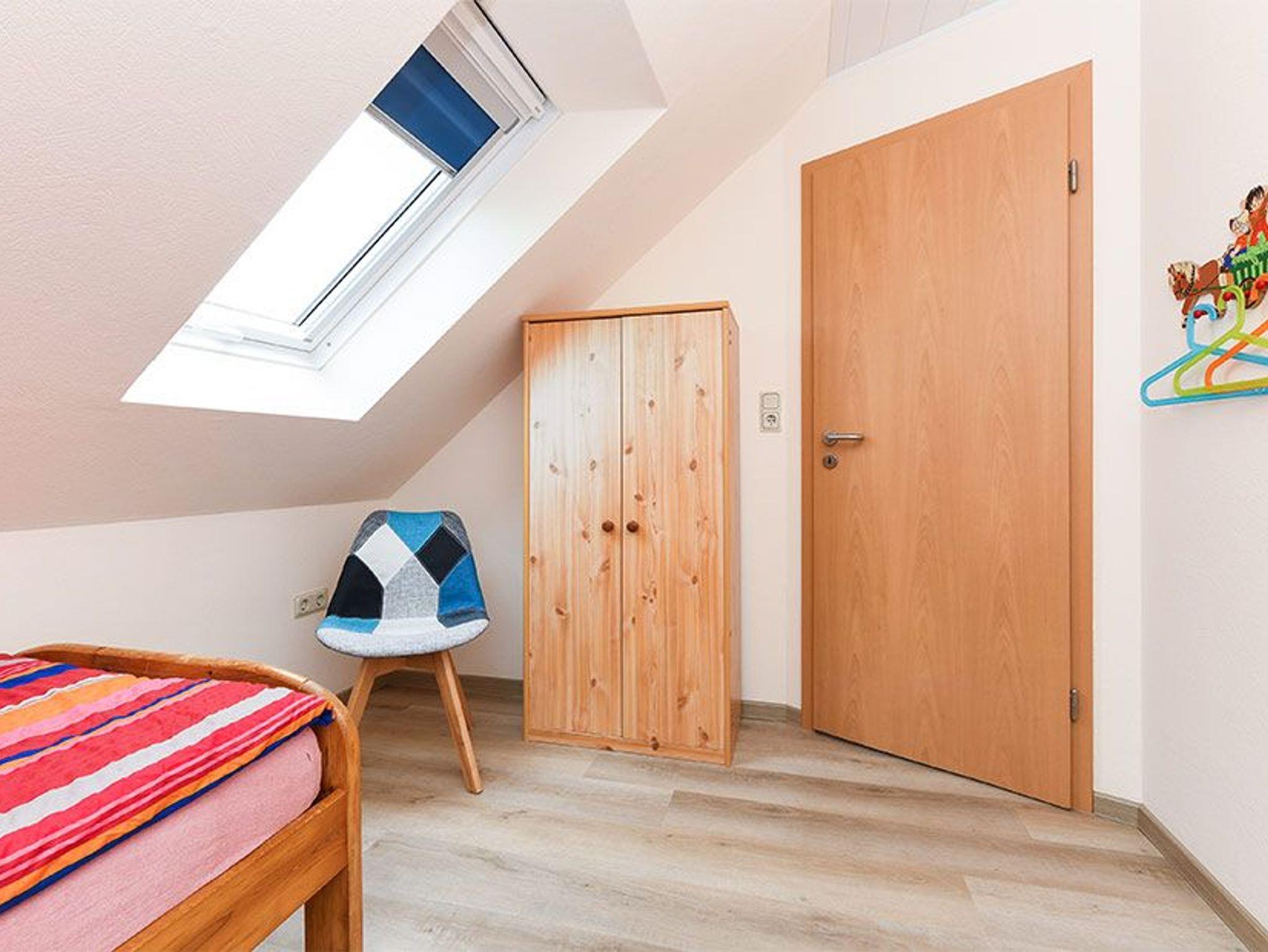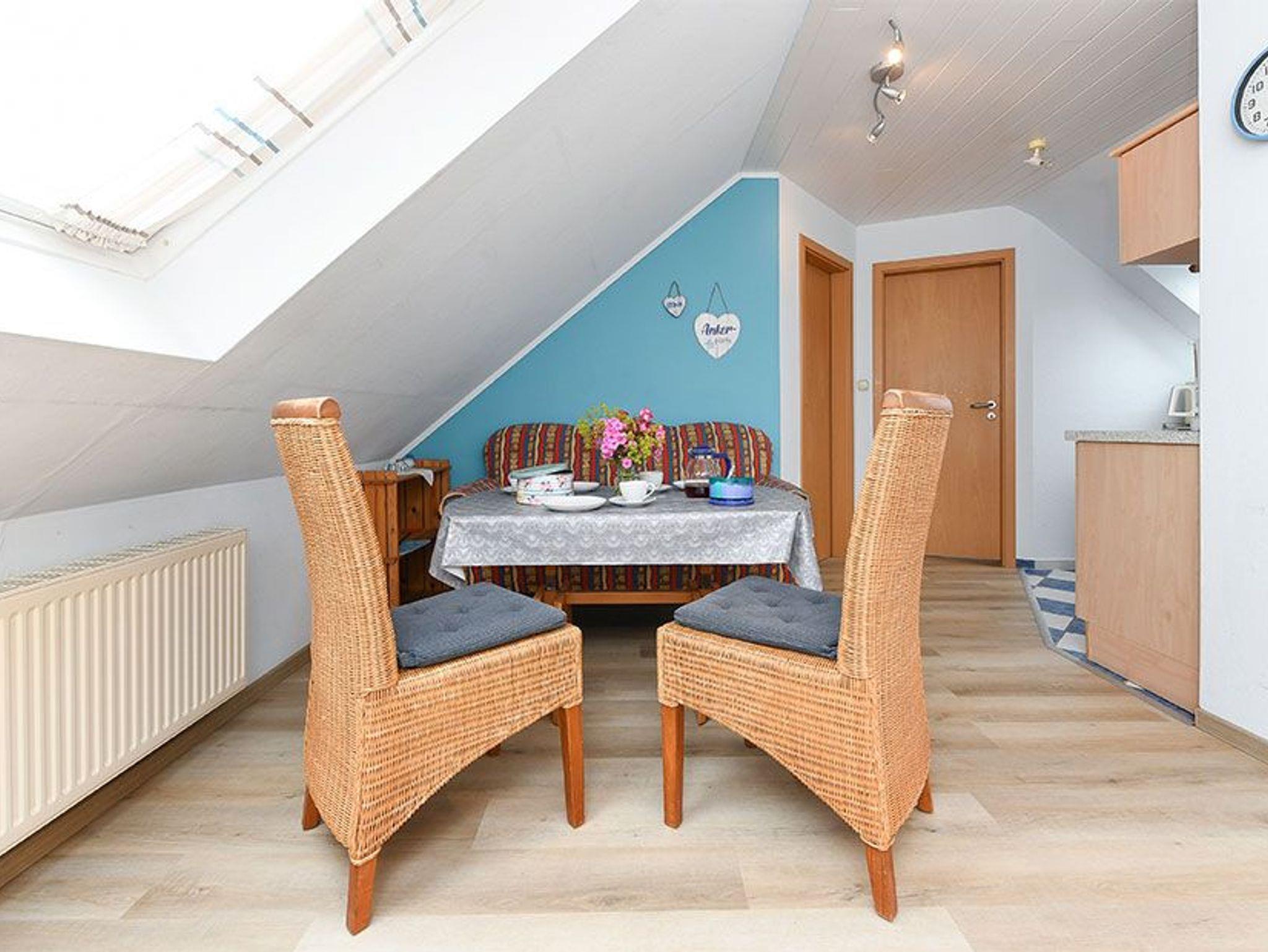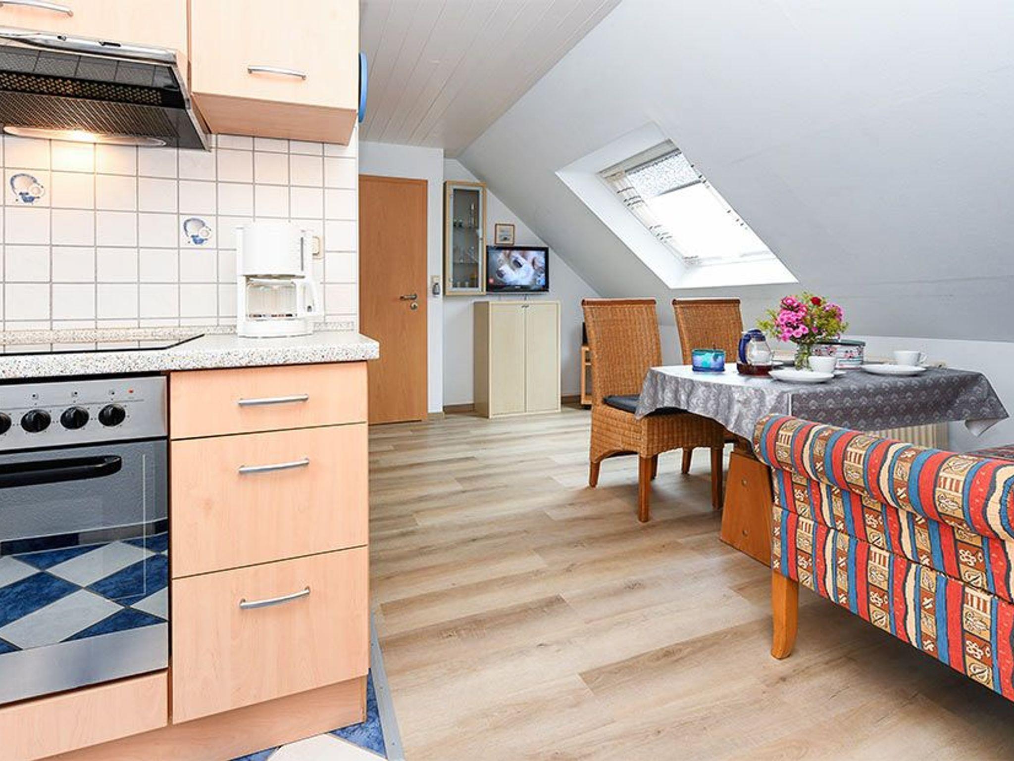 Größe ca. 50 Quadratmeter, Wohnraum mit integrierter Küche, Schlafzimmer, zweites separates Schlafzimmer/Kinderzimmer, Badezimmer mit Dusche, Waschtisch und WC, Obergeschoss, optimal für 2 bis 3 Personen und zusätzlich ein Kleinkind.
