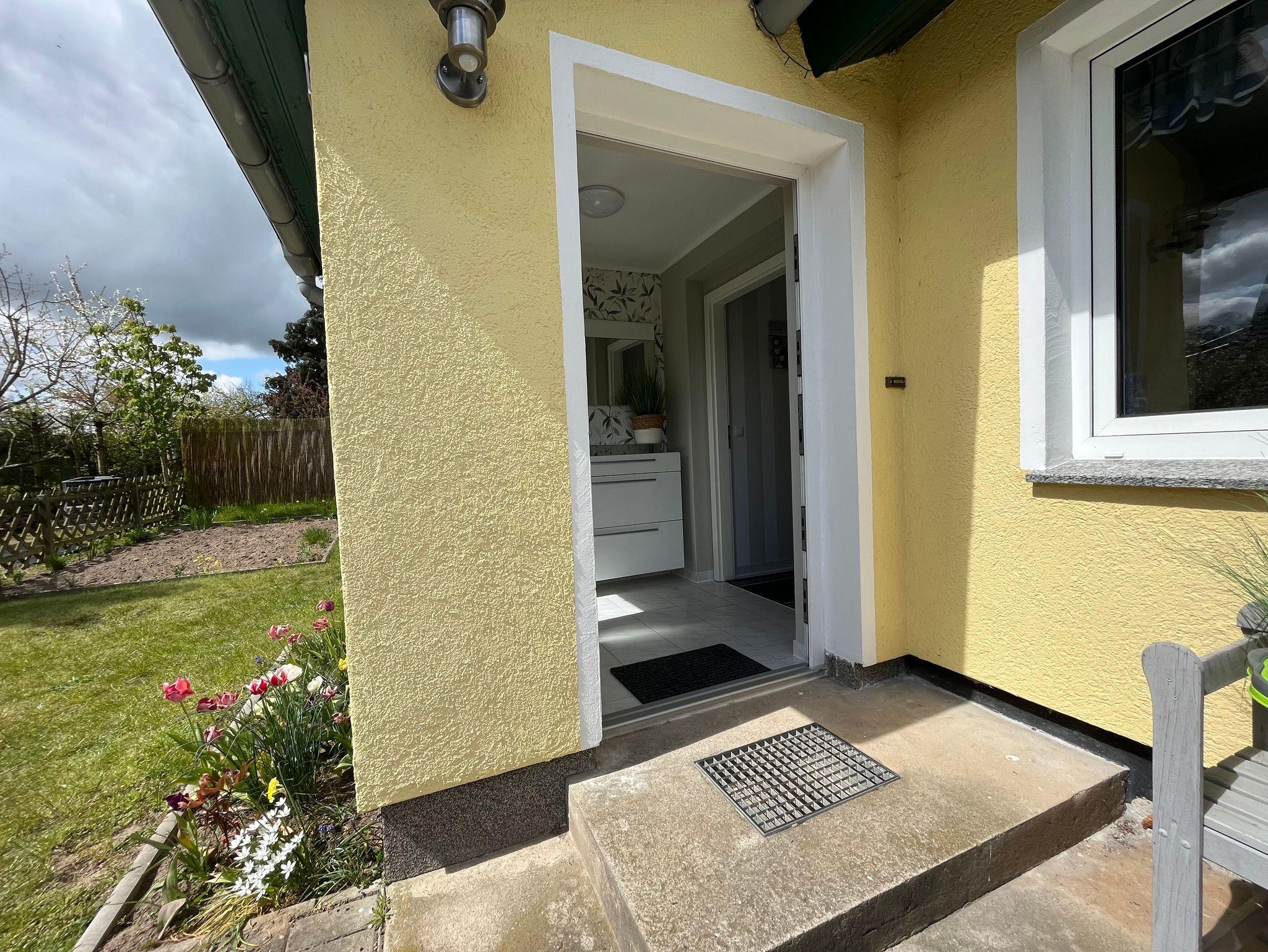 3-Raum-Ferienhaus (max. 3 Pers, 63m²) mit Gartenterrasse im 250m² eingezäuntem Garten auf gepflegtem Grundstück des Vermieters.