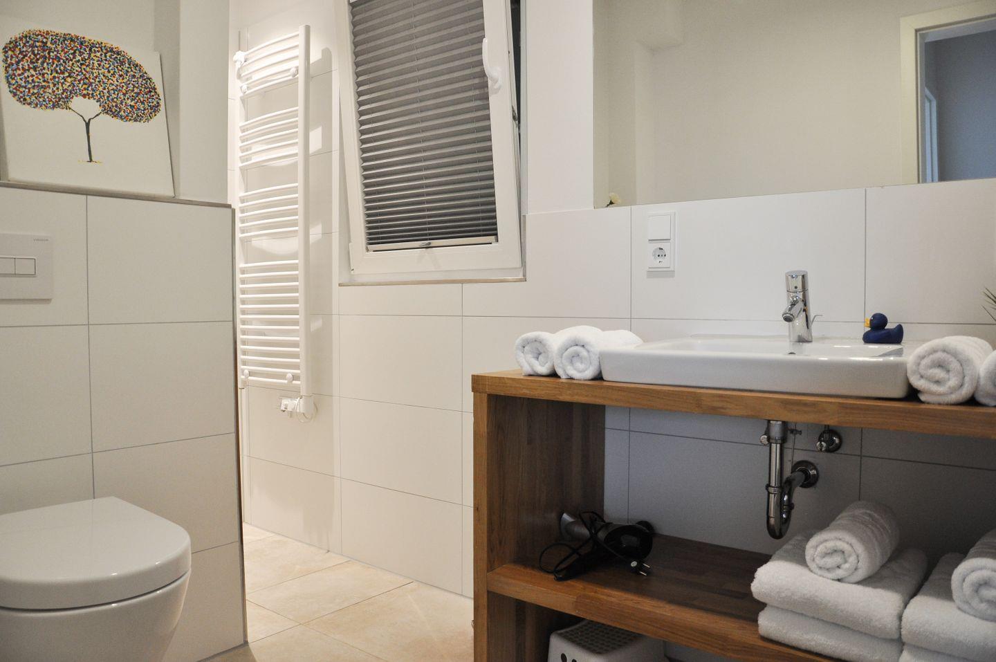 Highlight der Unterkunft ist die bodengleich gestaltete Dusche im modernen Badezimmer, somit können Sie sich sofort wohlfühlen. Die Wohnung ist allergikergeeignet und bietet durch Fußbodenheizung und Zentralheizung ein behagliches Wohnklima, unabhängig von der Jahreszeit.