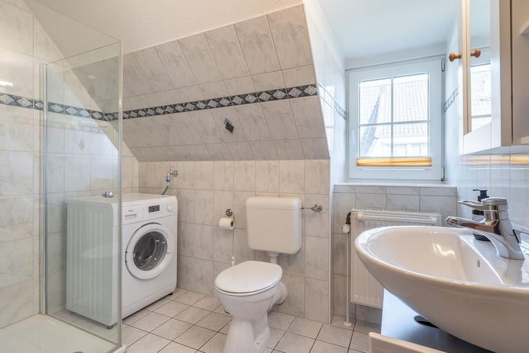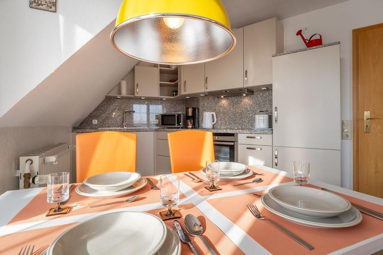 På 1. etage: (åbent køkken(kogeplade(Komfur med fire kogeplader, glaskeramisk), elkedel, brødrister, emhætte, kaffemaskine, ovn, mikrobølgeovn, opvaskemaskine , køleskab(+ fryser)), stue / spisestue(Fjernsyn(fladskærm, parabol), spisebord, sofahjørne), soveværelse(dobbeltseng), soveværelse(enkeltseng, enkeltseng), badeværelse(bruser, håndvask, toilet, vaskemaskine)) balkon, varme, havemøbler, parkering, Håndklæder/sengelinned (inkl.)