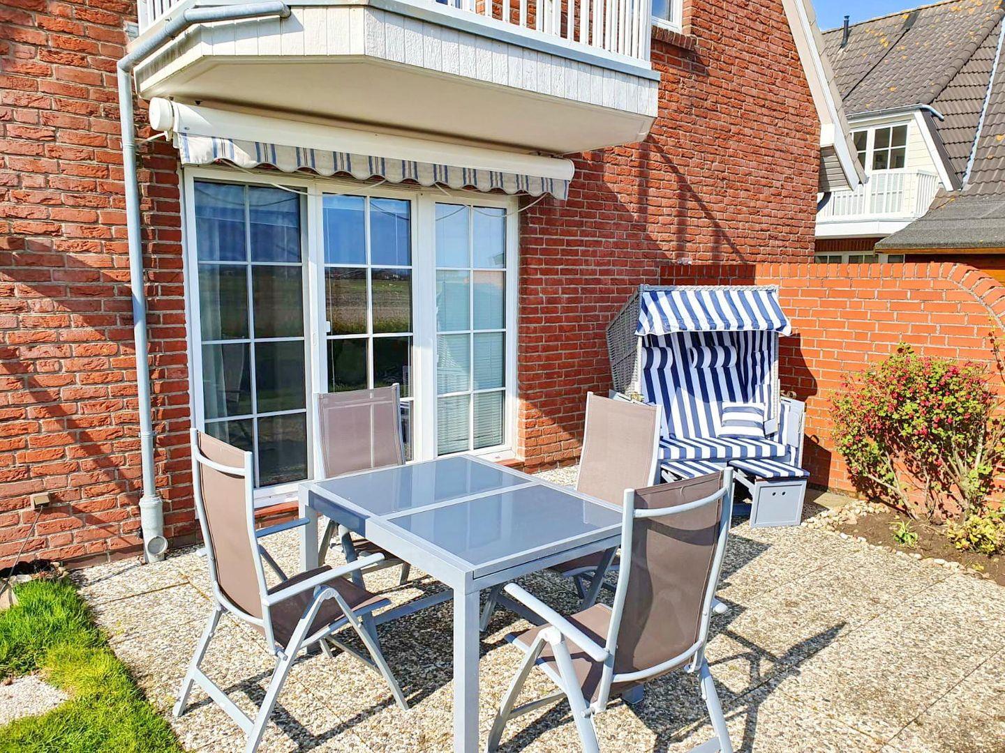 W-LAN, kleine Hunde erlaubt, Süd-und West-Terrasse, Strandkorb, Fahrradabstellmöglichkeit, Bügeleisen, Garderobe, Schuhschrank, Spiegel, Wäsche optional dazu buchbar, 1 kostenfreier Parkplatz
