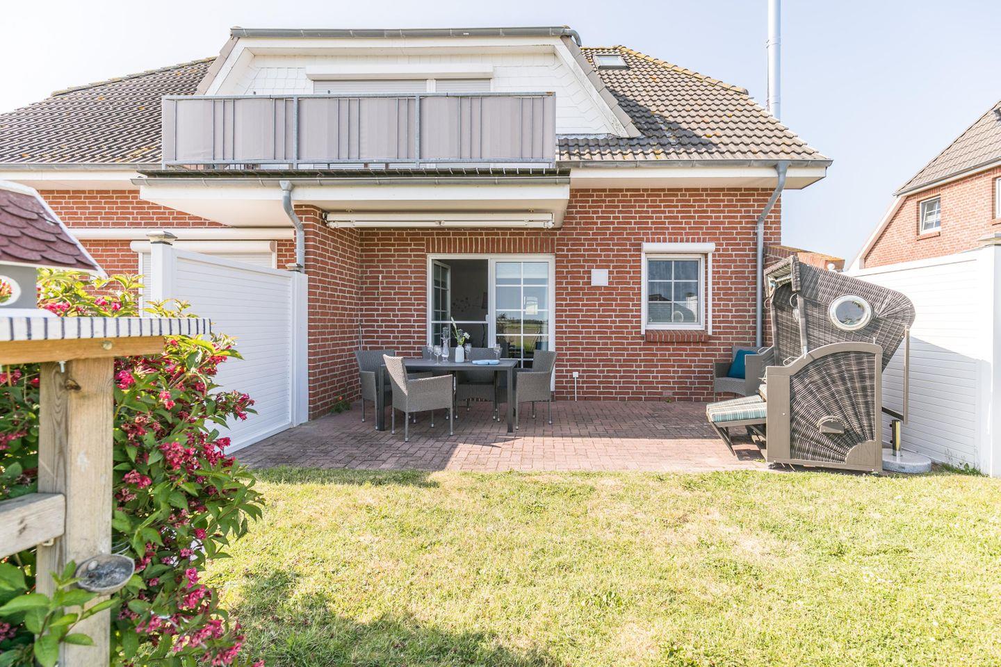 1 kostenfreier Parkplatz, Garderobe, Spiegel, W-Lan, Terrasse, Gartenmöbel, Markise, Strandkorb, Waschraum mit Waschmaschine im Obergeschoss, Fahrradabstellplatz und Außensteckdose, Wäsche optional dazu buchbar