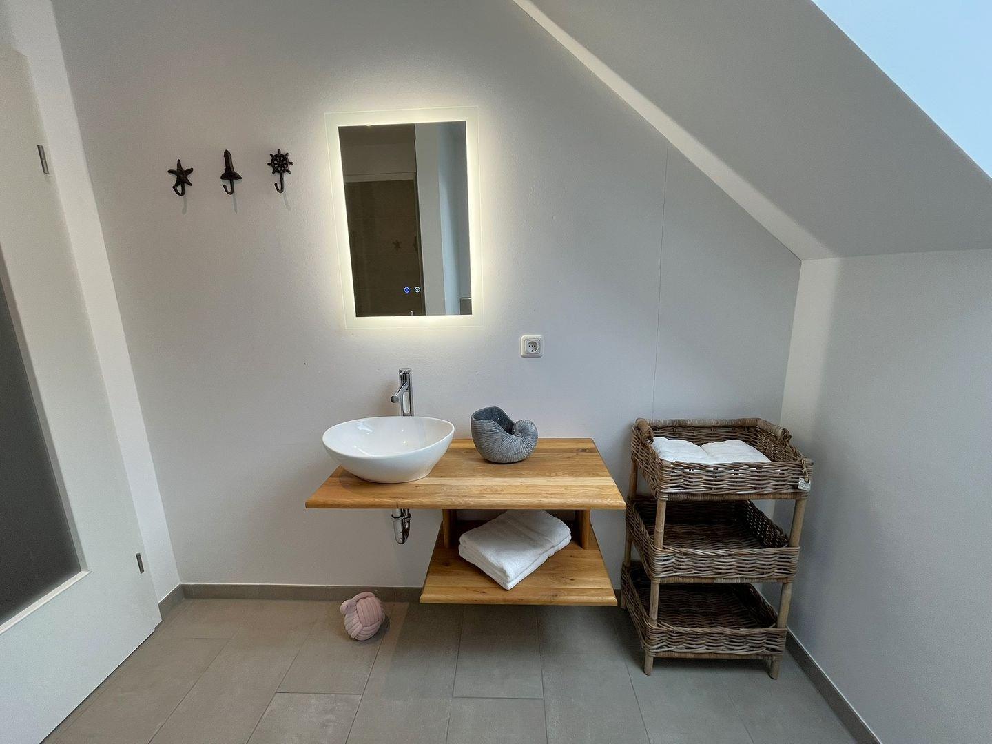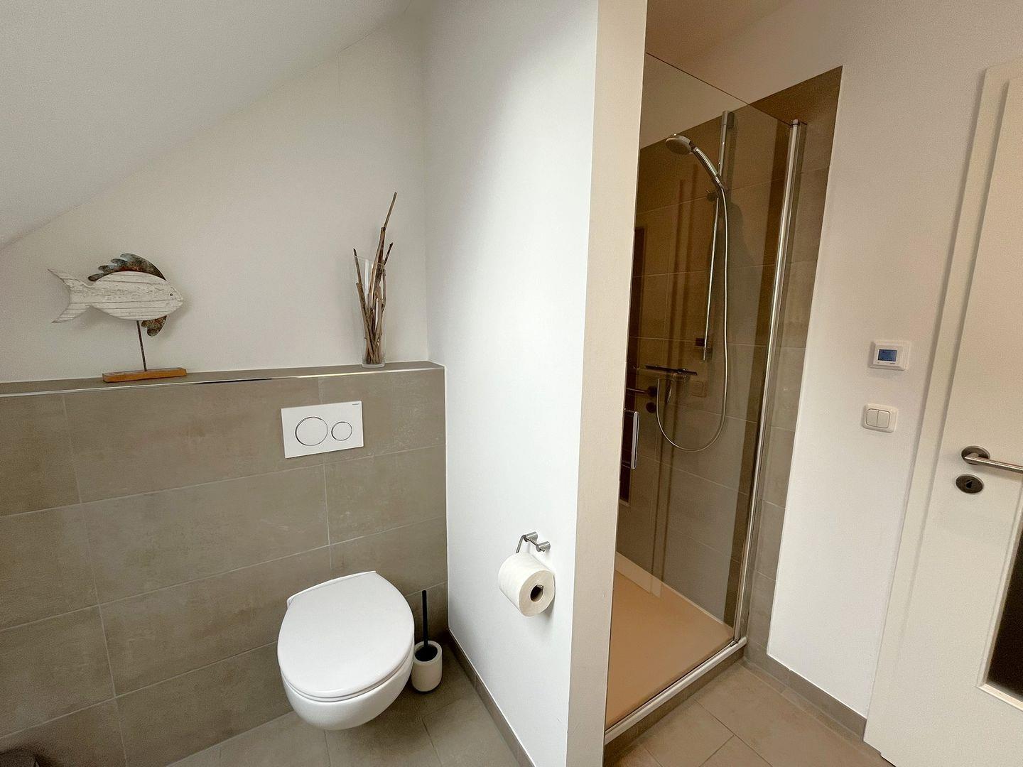 Ganz neu ist das zweite, moderne Tageslichtbad mit Fenster und Fußbodenheizung auf dieser Etage.