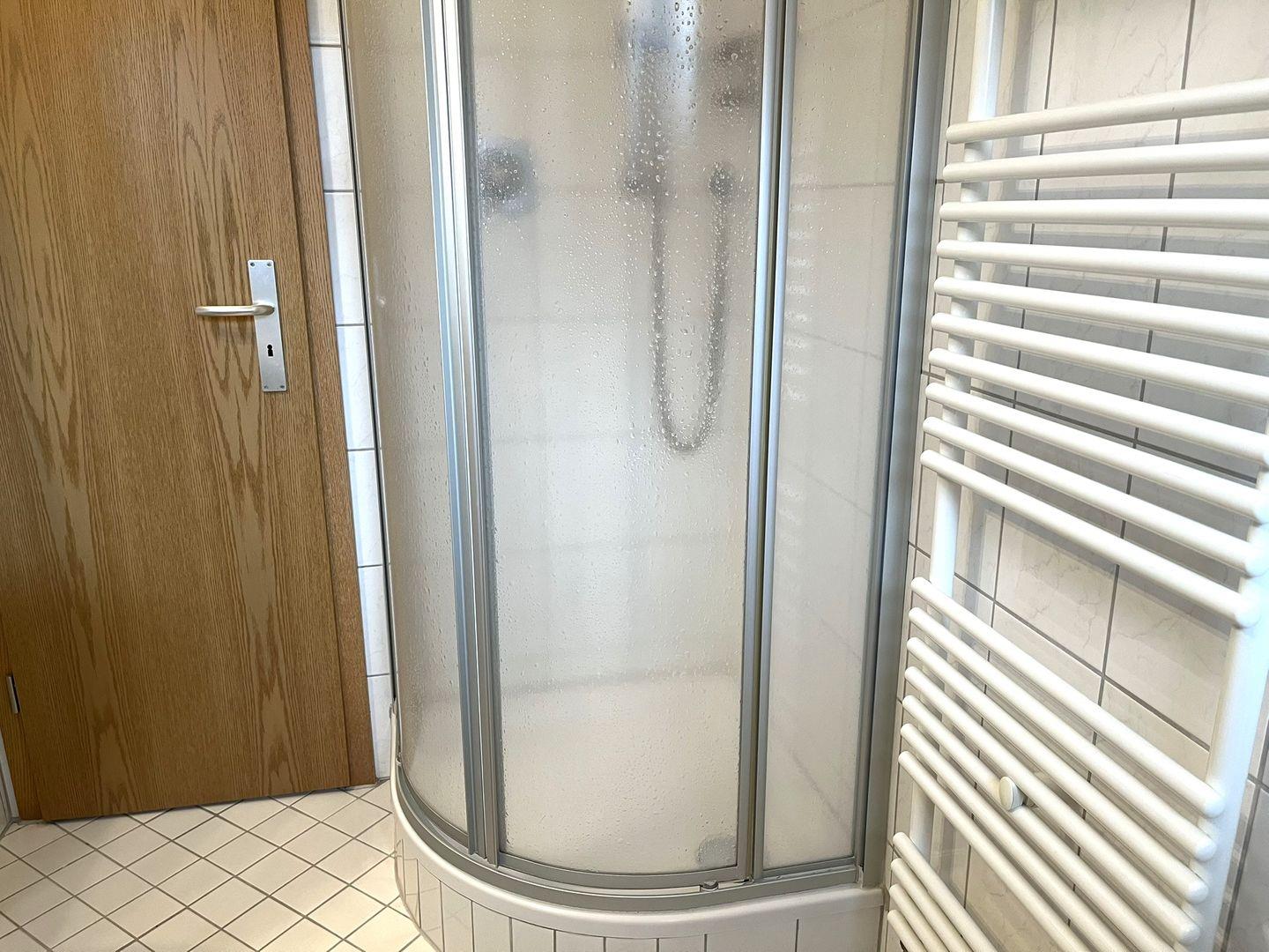 Ein Tageslicht- Duschbad mit Waschmaschine, Wäscheständer, Handtuchwärmer und einem Föhn rundet diese schöne Wohnung ab.