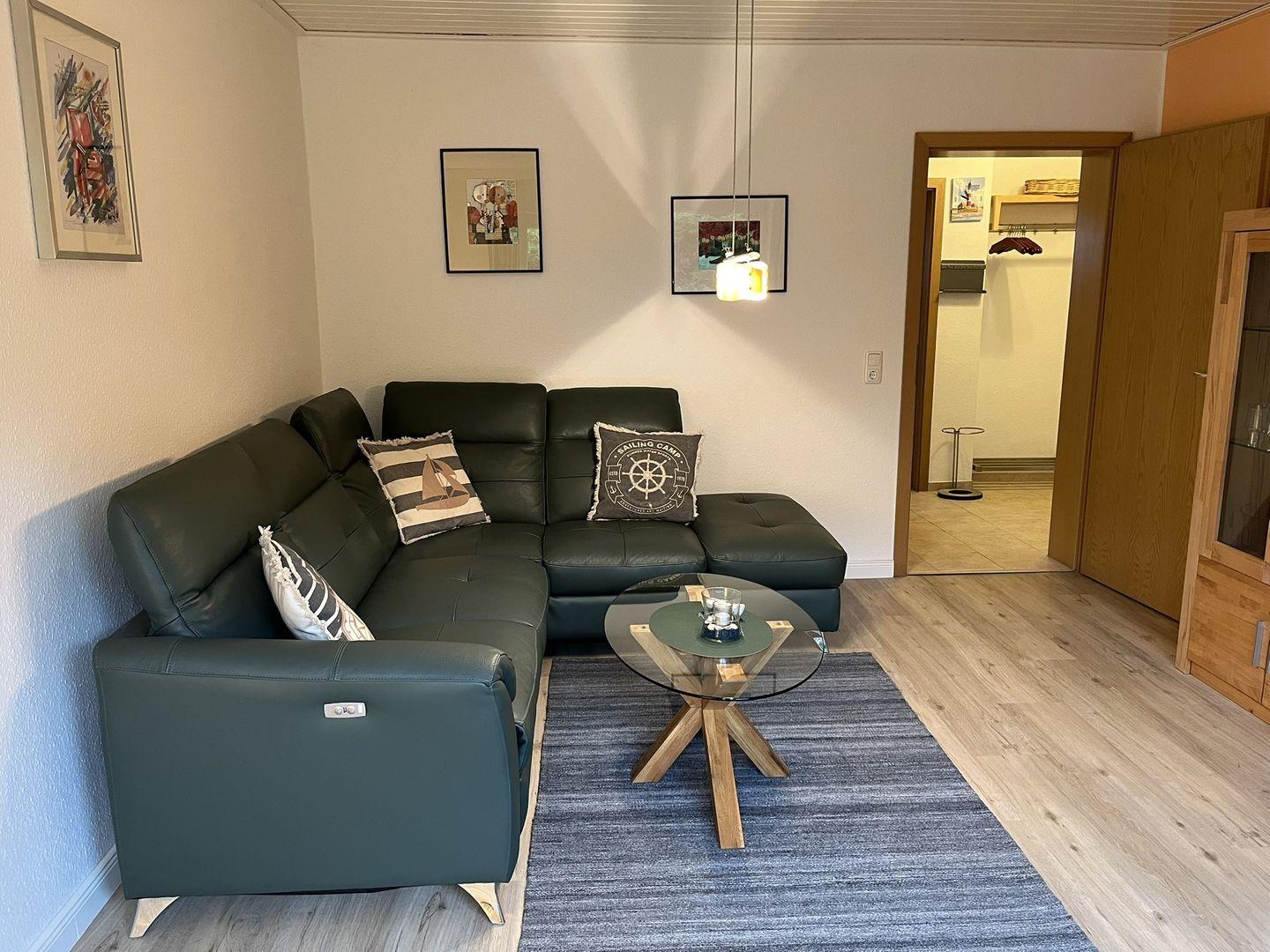 In der separaten, komplett ausgestatteten Küche kann man sich den Tag mit Leckereien aus dem Norden verschönern und Sie an dem gemütlichen Esstisch genießen.