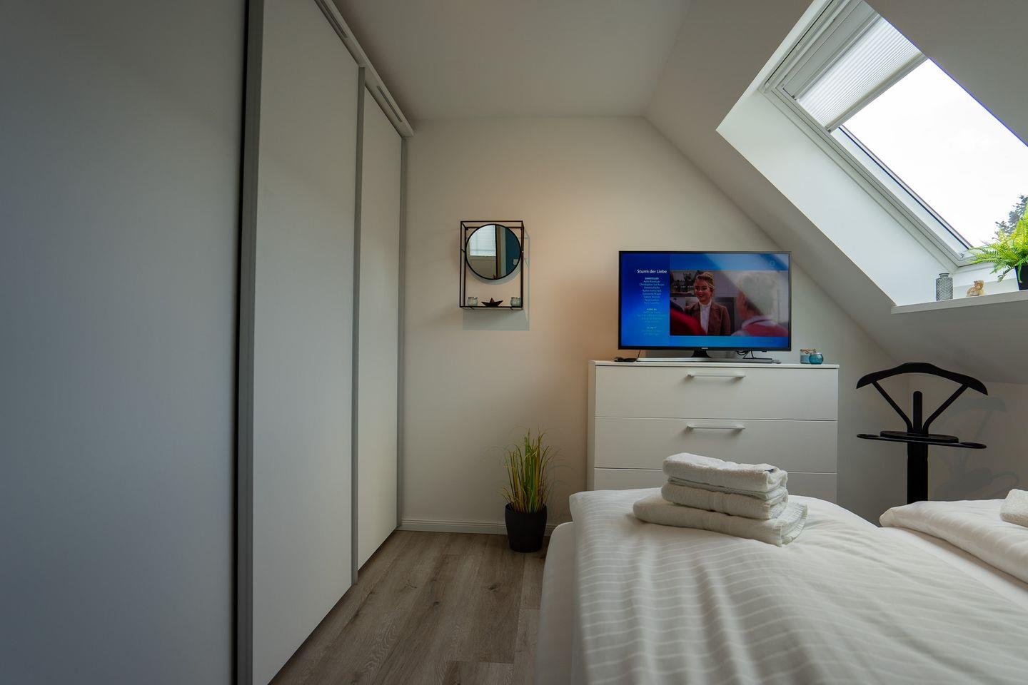 Das Apartment Gezeiten ist sehr hochwertig ausgestattet und verfügt in jedem Zimmer über eine Fußbodenheizung und einen allergikerfreundlichen Vinylboden. Zu der gehobenen Ausstattung zählen unter anderem Annehmlichkeiten wie Power WLAN, 2x SmartTV's und eine energetische Bauweise (KfW 55). Es erwartet Sie ein geräumiges und helles Wohnzimmer mit angrenzendem Balkon, auf dem Sie nach einem aufregenden Tag mit Blick in die Natur den Abend ausklingen lassen können.
