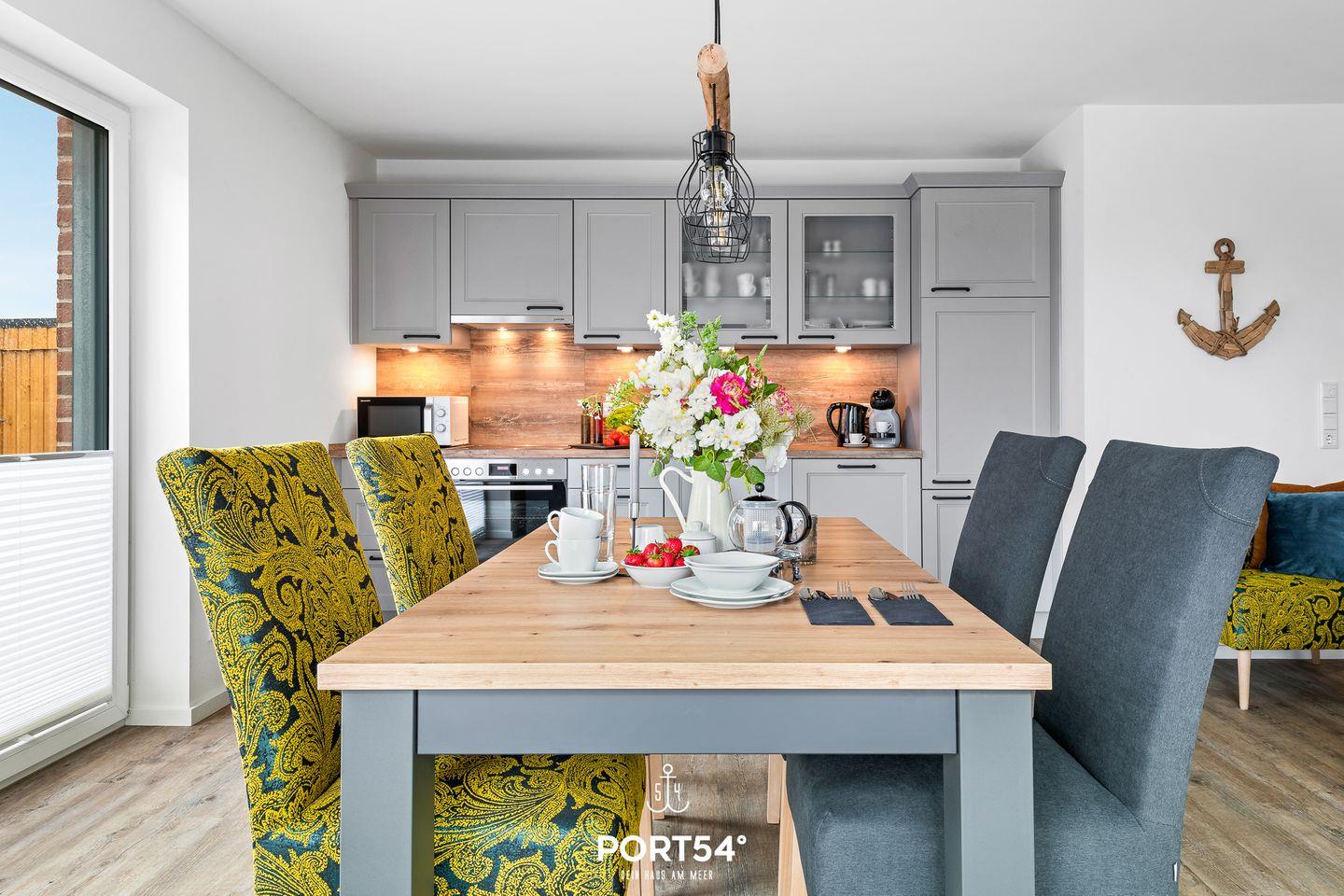 Die im EG gelegene Ferienwohnung "Küste 5" ist für 4 Personen geeignet. Der Wohnbereich verfügt über ein Schlafsofa und ein Smart-TV. Die Küche ist offen gestaltet und voll ausgestattet. Bodentiefe Fenster lassen viel Licht herein und ermöglichen den Zutritt zur vollmöblierten Terrasse. Im Schlafzimmer erwarten Sie ein großes Doppelbett (180x200cm), ein TV sowie verdunkelbare Fenster. Das Badezimmer ist mit einer ebenerdigen Dusche ausgestattet.