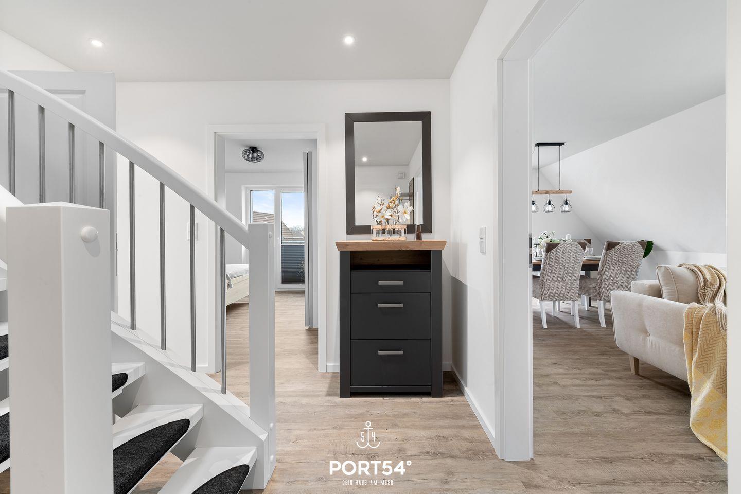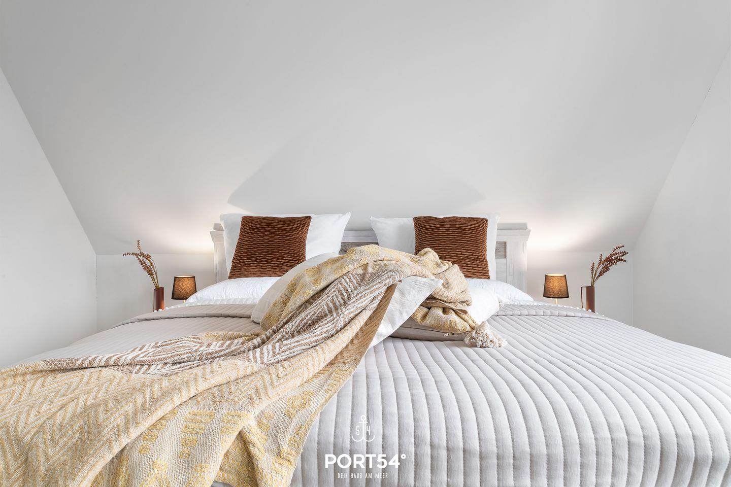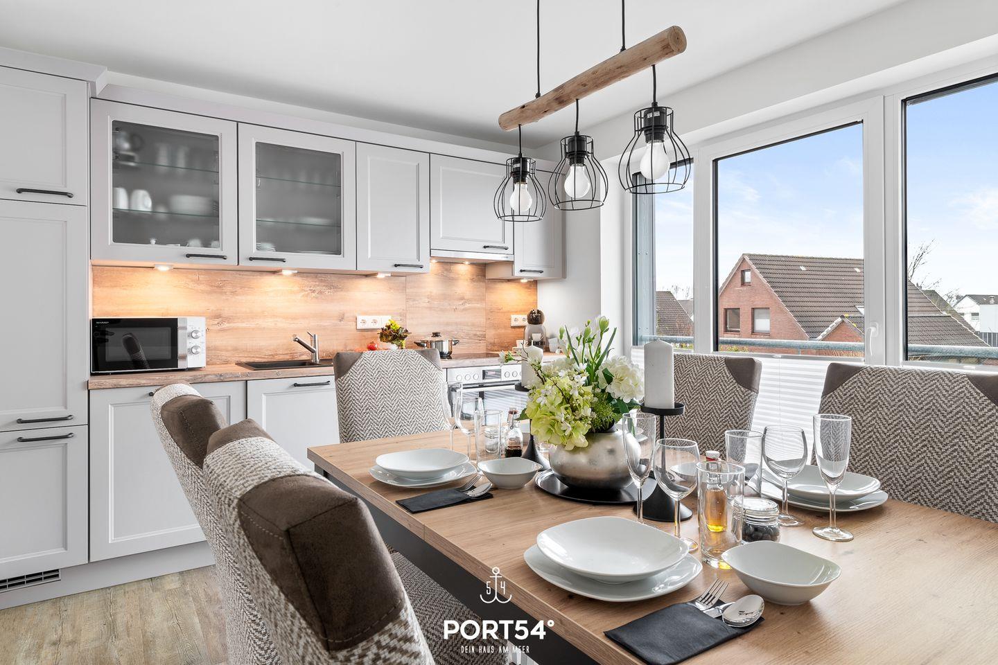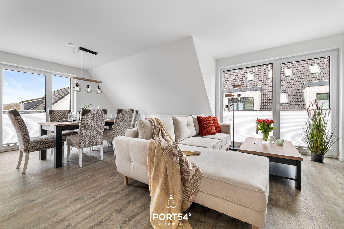 Die im OG gelegene Ferienwohnung "Küste 7" ist für 6 Personen geeignet. Der Wohnbereich ist mit einem Schlafsofa und einem TV ausgestattet. Die Küche ist offen gestaltet und voll ausgestattet. Bodentiefe Fenster lassen viel Licht herein und ermöglichen den Zutritt zum Balkon. Die beiden Schlafzimmer erwarten Sie mit je einem großes Doppelbett (180x200cm), sowie Verdunkelungsmöglichkeiten. Das Badezimmer ist mit einer ebenerdigen Dusche ausgestattet. Ein Gäste-WC ist vorhanden.
