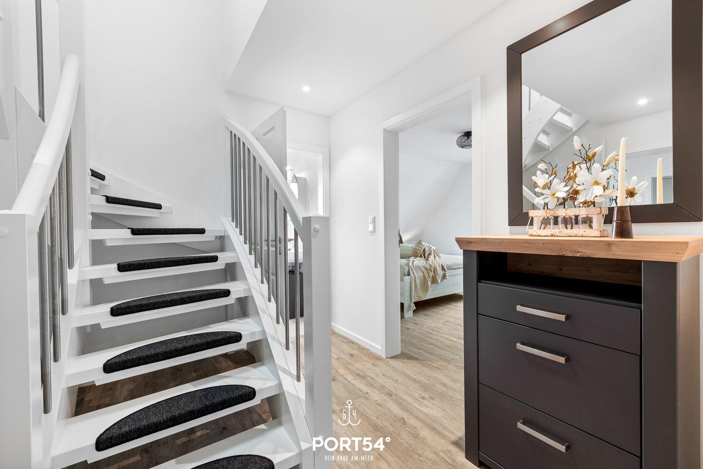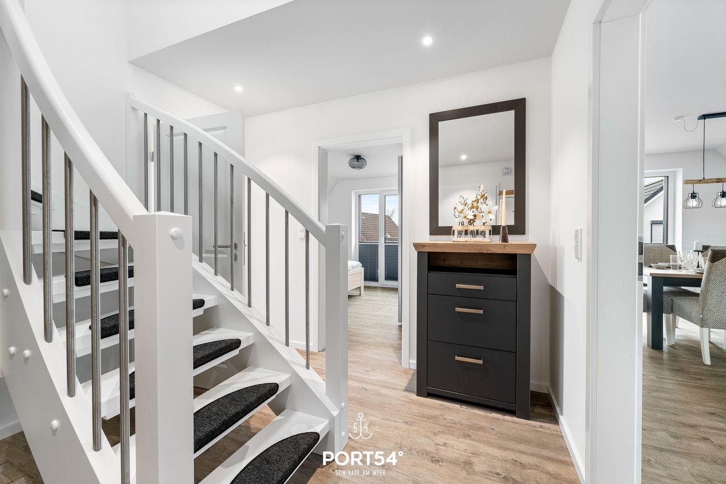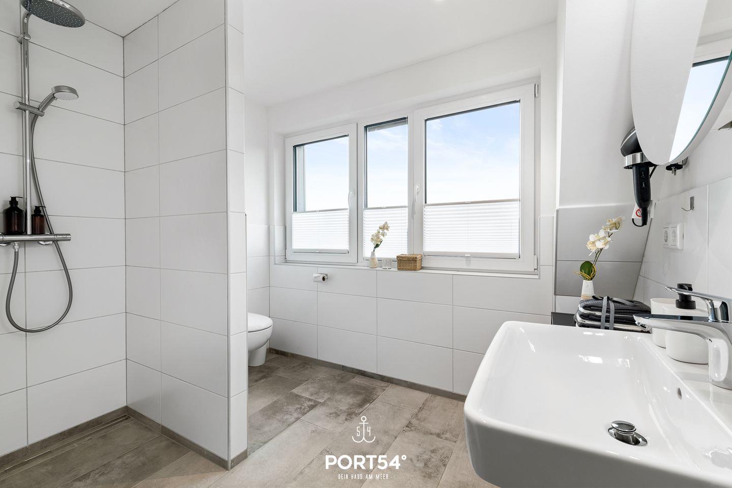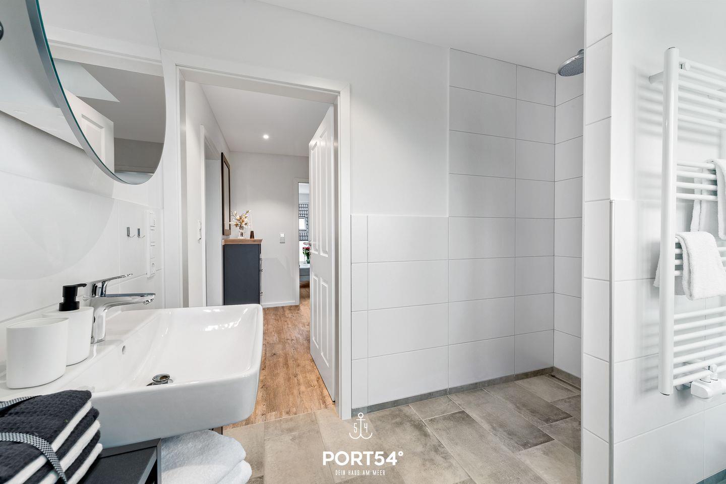 Die im OG gelegene Ferienwohnung "Küste 7" ist für 6 Personen geeignet. Der Wohnbereich ist mit einem Schlafsofa und einem TV ausgestattet. Die Küche ist offen gestaltet und voll ausgestattet. Bodentiefe Fenster lassen viel Licht herein und ermöglichen den Zutritt zum Balkon. Die beiden Schlafzimmer erwarten Sie mit je einem großes Doppelbett (180x200cm), sowie Verdunkelungsmöglichkeiten. Das Badezimmer ist mit einer ebenerdigen Dusche ausgestattet. Ein Gäste-WC ist vorhanden.