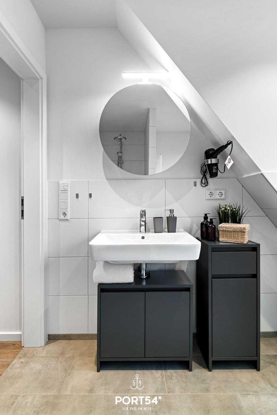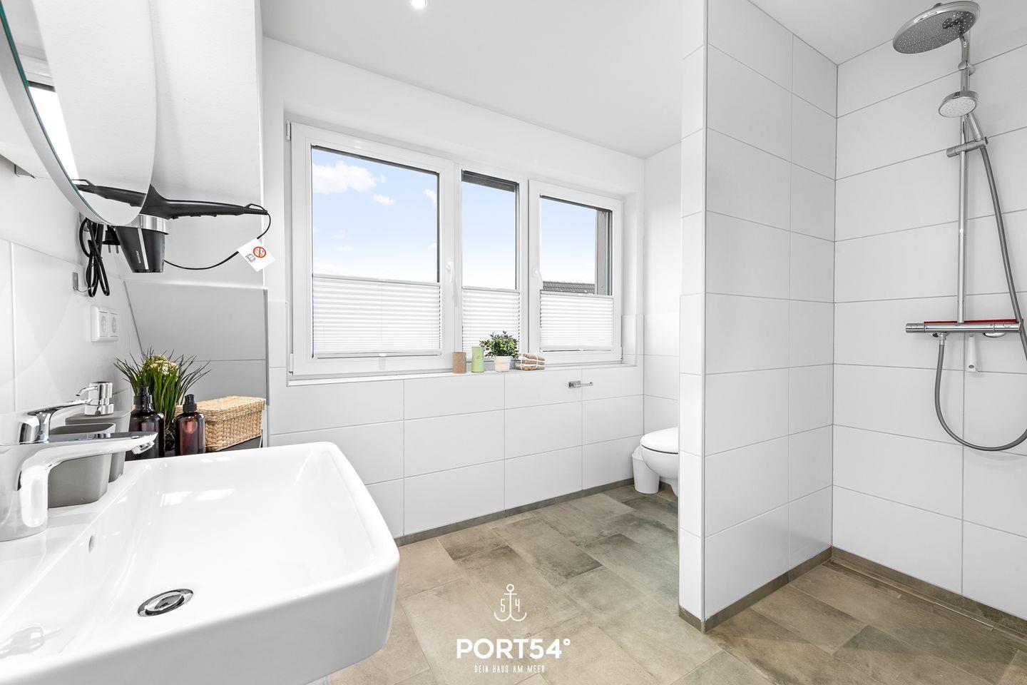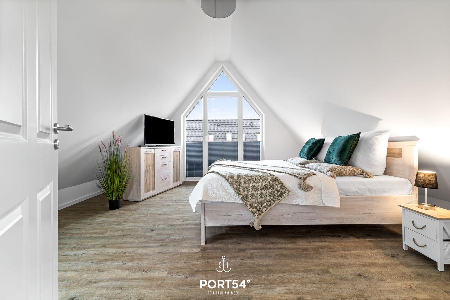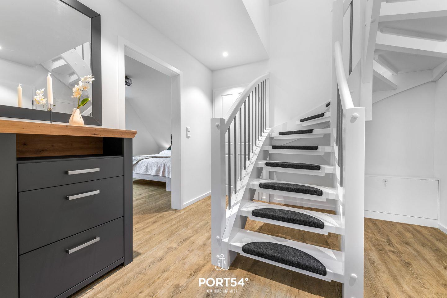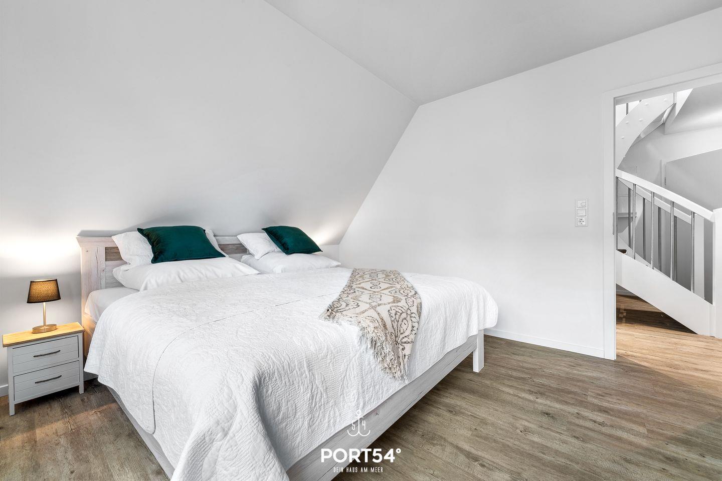 In gehobener und exklusiver Holzständerwerk-Bauweise erwartet Sie die im Dachgeschoss und Spitzboden gelegene Ferienwohnung "Küste 8" auf etwa 85m². Der lichtdurchflutete Wohnbereich ist mit einer gemütlichen Wohnlandschaft inklusive Schlaffunktion (250x160cm) und einem Flachbild-TV ausgestattet. Die angrenzende Küche ist offen gestaltet und bietet alle Annehmlichkeiten, die für einen geselligen Kochabend benötigt werden. Am Esstisch mit gemütlichen Stühlen können Sie bequem gemeinsam essen oder einen Spieleabend verbringen. Bodentiefe Fenster lassen viel Licht herein und ermöglichen den Zutritt zum vollmöblierten Balkon. In einem der beiden Schlafzimmer erwartet Sie ein großes Doppelbett (180x200cm), sowie verdunkelbare Fenster. Das andere Schlafzimmer befindet sich im ausgebauten Spitzboden und bietet ein Doppelbett (160x200cm) und einen weiteren Flachbild-TV fürs nächtliche Entertainment und Verdunkelungsmöglichkeiten für erholsame Nächte. Das Badezimmer ist mit einer ebenerdigen Dusche, einem WC sowie einem Waschbecken ausgestattet. Im Spitzboden befindet sich ein Gäste Bad mit WC und Waschbecken. Mitgebrachte Fahrräder können im Fahrradschuppen untergestellt werden.
