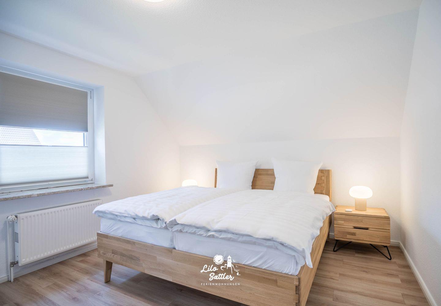 Das Schlafzimmer ist ein ruhiger Rückzugsort und das gemütliche Doppelbett garantiert erholsamen Schlaf. Fliegengitter an den Fenstern sorgen auch hier für eine angenehme Nachtruhe.