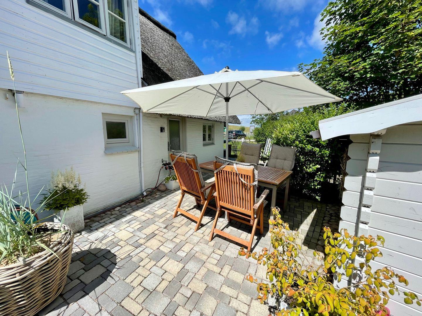 Auf der kleinen Terrasse vor dem Haus kann man die Abendsonne fast bis zum Sonnenuntergang genießen